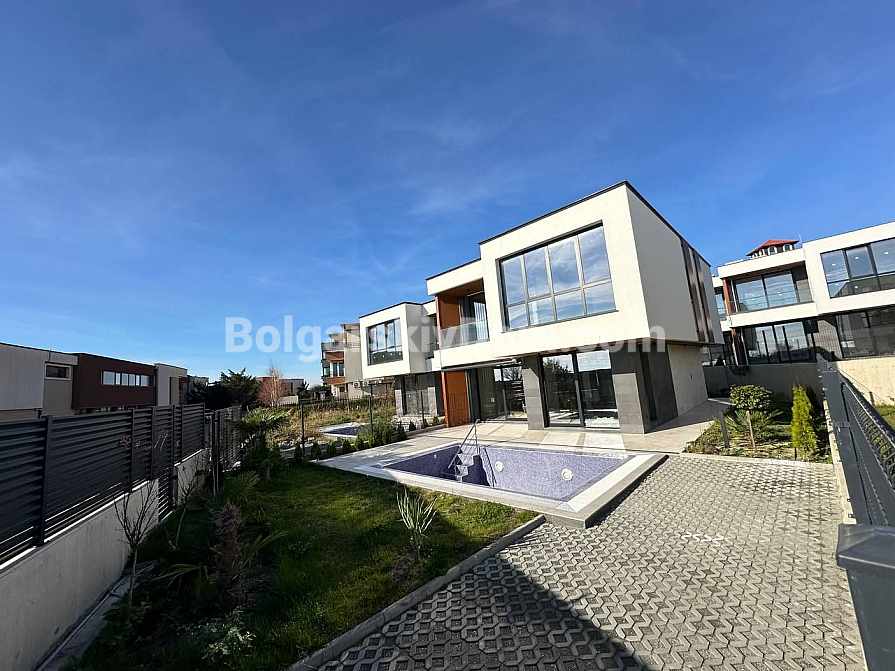 The agency "Bulgarian Home" presents modern two-story houses, whose construction is fully completed and the properties have received Act 16. The villas range in size from 172 to 204 sq.m, with prices starting from 340,000 euros excluding VAT. The layouts are improved and thoughtfully designed: on the first floor, there is an entrance hall, living room, kitchen-dining area, two bathrooms, and a terrace; on the second floor — three bedrooms and another bathroom. Each villa offers a sea view, private yard, barbecue area, and two parking spaces. Heating is electric, and there are no maintenance fees, making property ownership highly profitable.