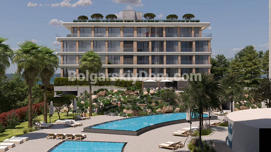The Azur Aqua complex is located in the greenest and quietest area of St. Constantine and Elena, just 50 meters from the best beaches and a 10-minute drive from the center of Varna. The entire concept of the complex is focused on a healthy lifestyle: it features its own spa and medical center with an indoor pool, sauna, and fitness center, while the outdoor pool is purified by an eco-friendly salt electrolysis system. The grounds form a real park (7,000 sq.m.) with rich landscaping and a sound system, and safety and convenience are ensured by a five-level secured parking with smart systems and charging stations for electric cars. This is Class A housing from a developer awarded "Building of the Year."
