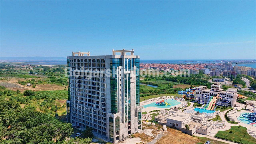 Aqua Vista is located just 350 meters from the sea in Pomorie – a town famous for its therapeutic balneological microclimate. The complex offers an exceptional level of service, including a spa, indoor pool, and private infrastructure. For owners, there is a convenient guaranteed income program that allows you to use the apartment for 4 weeks a year and enjoy free access to the water park. If you prefer not to participate in the program, the annual maintenance fee is 21 euros per sq.m. This is a unique opportunity to acquire high-class property from the developer that will start generating income for you from May 2027.