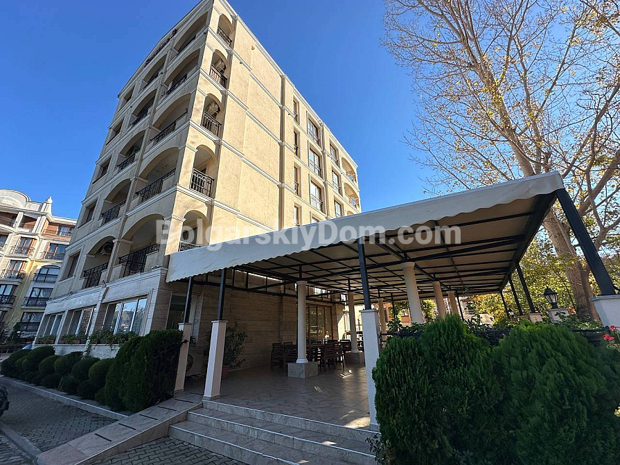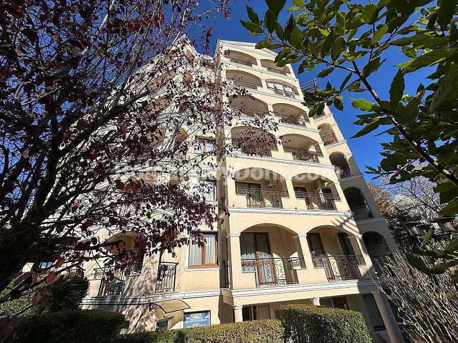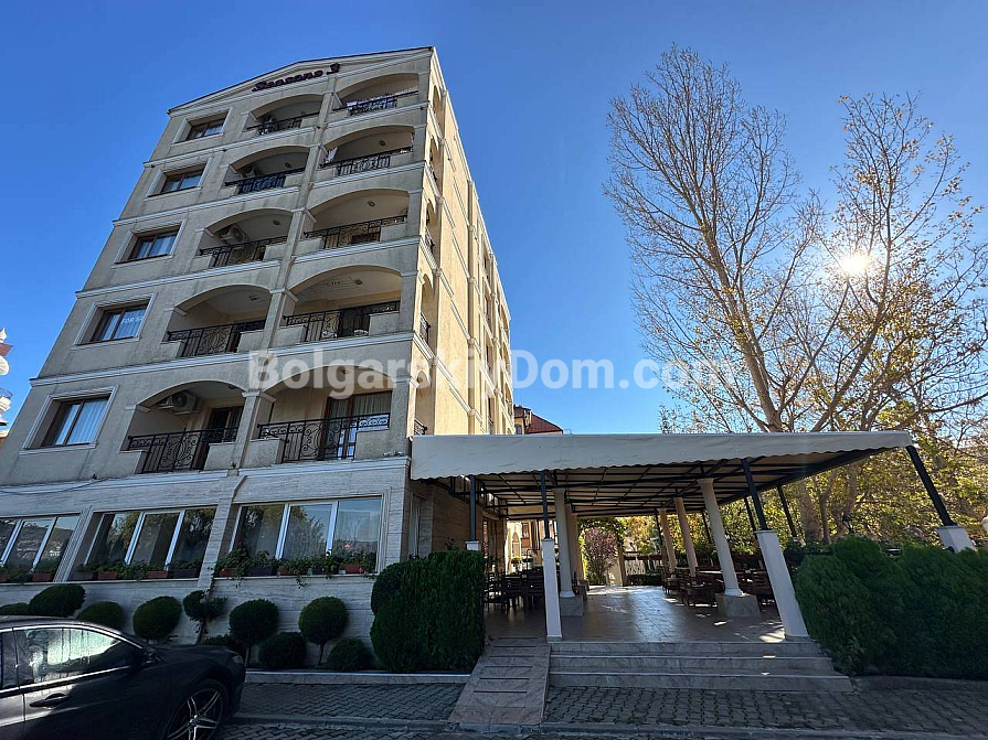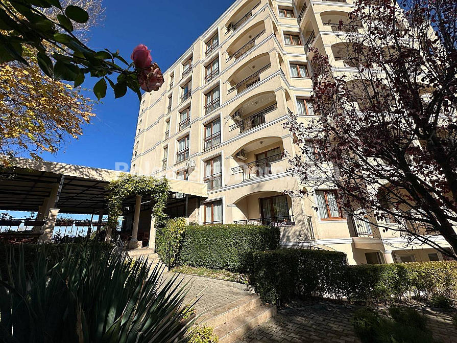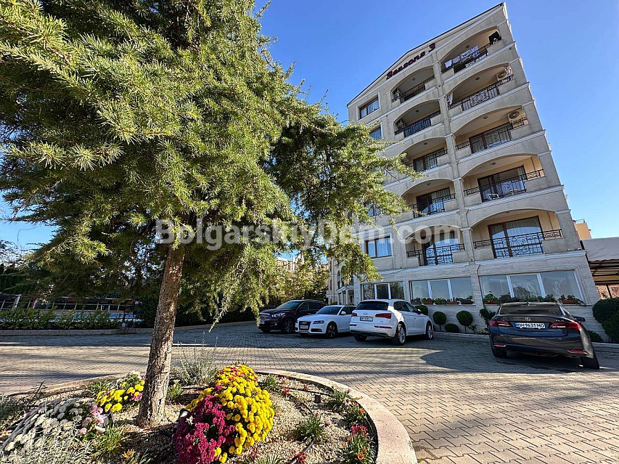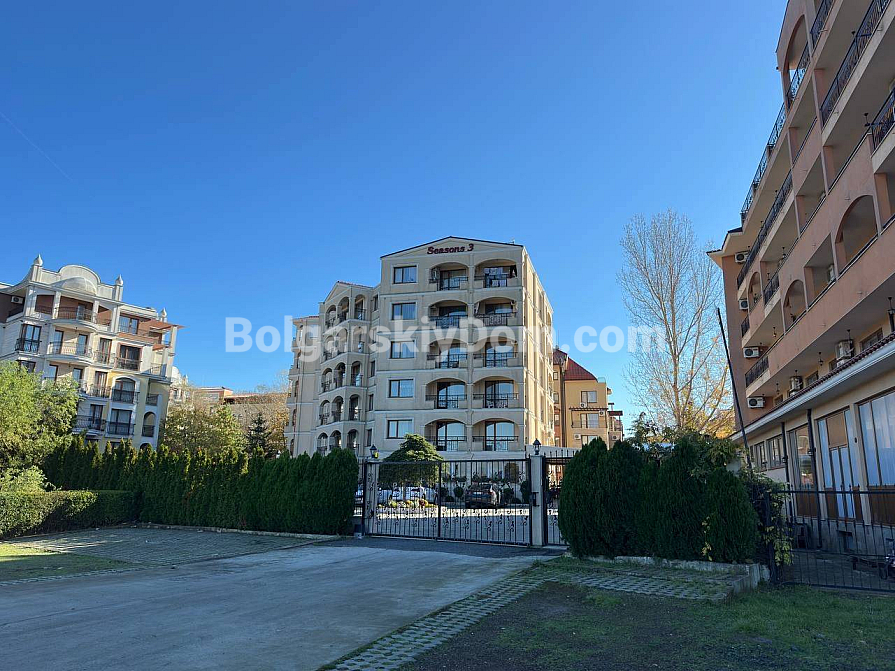 Seasons 3 is a small cozy and green complex in Sunny Beach, created for those who appreciate tranquility and comfort. A well-maintained gated community with a swimming pool, barbecue area and internal parking. In summer, there is a pleasant outdoor restaurant. The elevator is continuously operating in the six-storey building. The highlight of the complex is its own sauna, where you can relax and unwind at any time of the year. A quiet, peaceful area away from the bustling resort life, but at the same time with a fairly developed infrastructure of the surrounding area. Nearby there is an excellent fish shop with fresh seafood, just 200 meters across the dogoga is a large year—round Lidl supermarket. The sea with a sandy beach is 800 meters away.