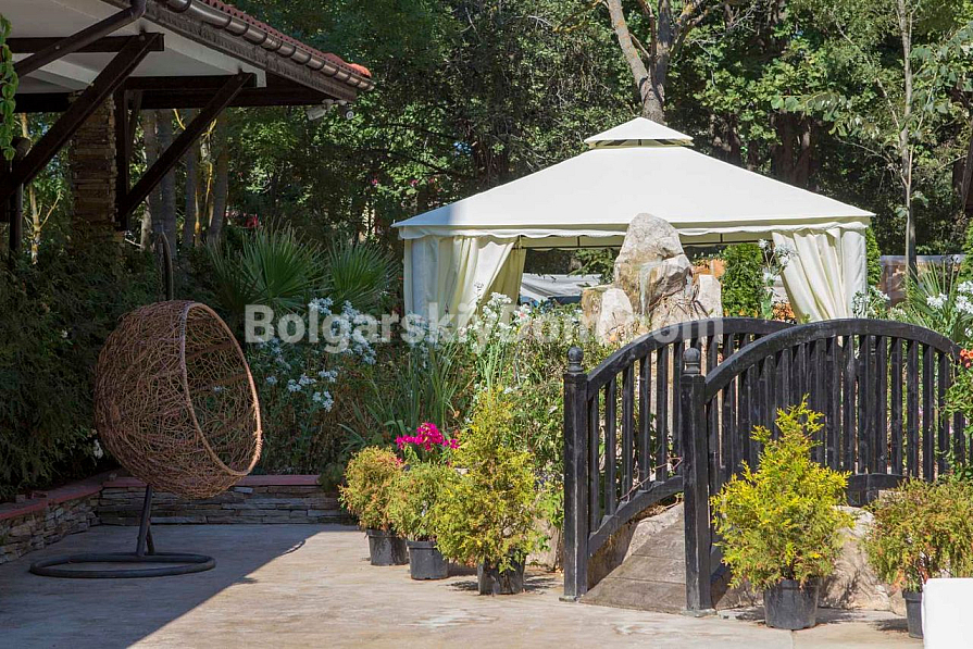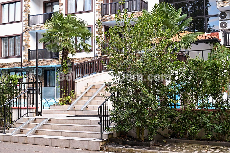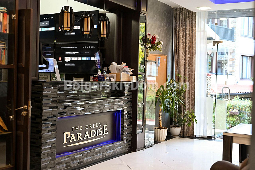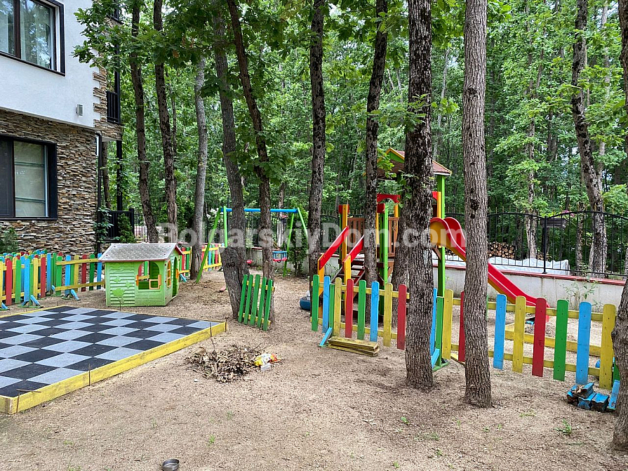 The internal infrastructure of the hotel is built in the following way: underground Parking, four swimming pools, one of which is indoor, Jacuzzi, sauna, steam bath, sports centre, several rest areas with gazebos and BBQ facilities and a games room for children and more. The area is richly landscaped, closed to outsiders and equipped with round the clock security with video surveillance.