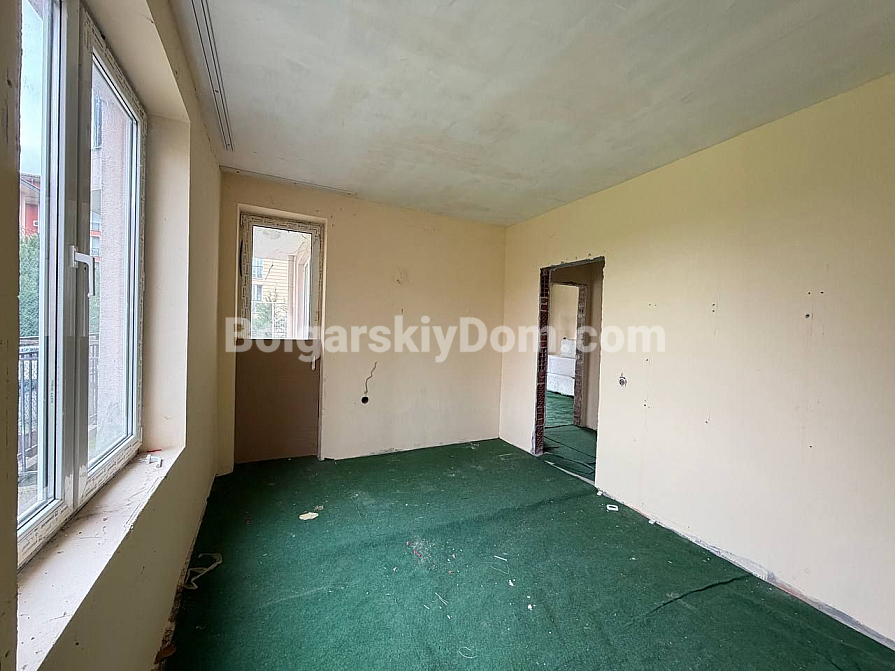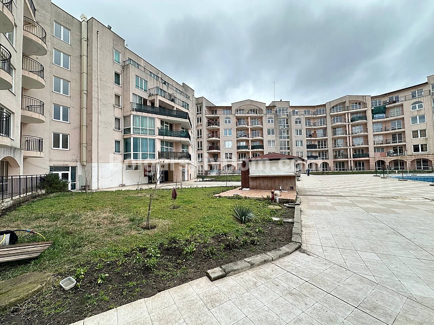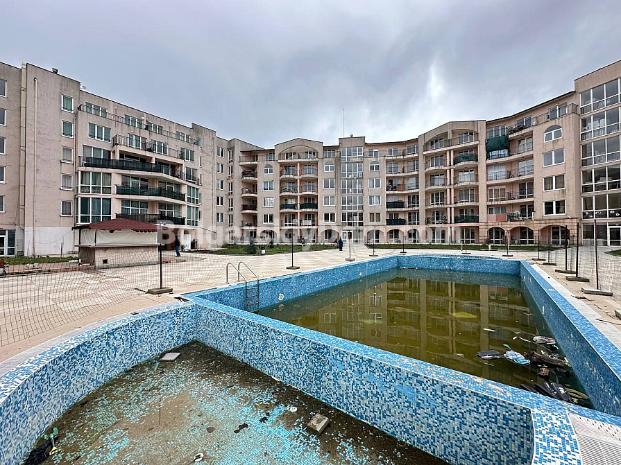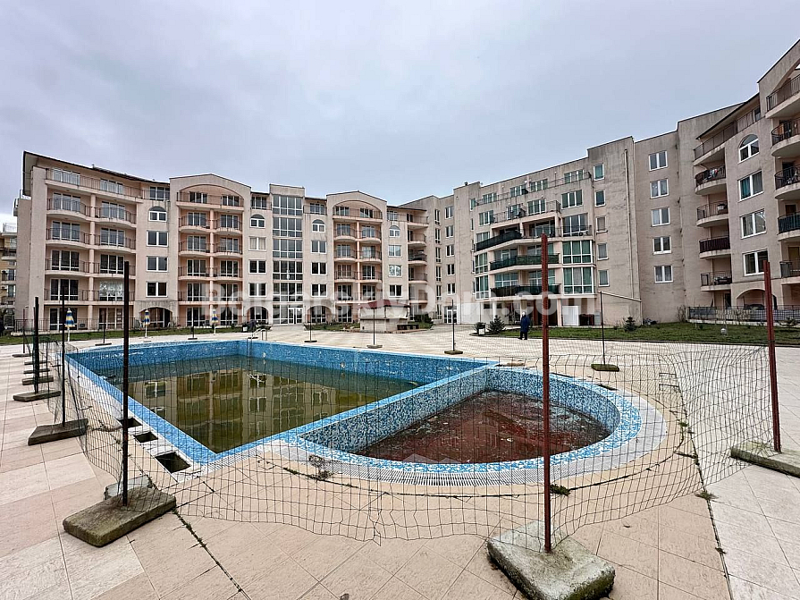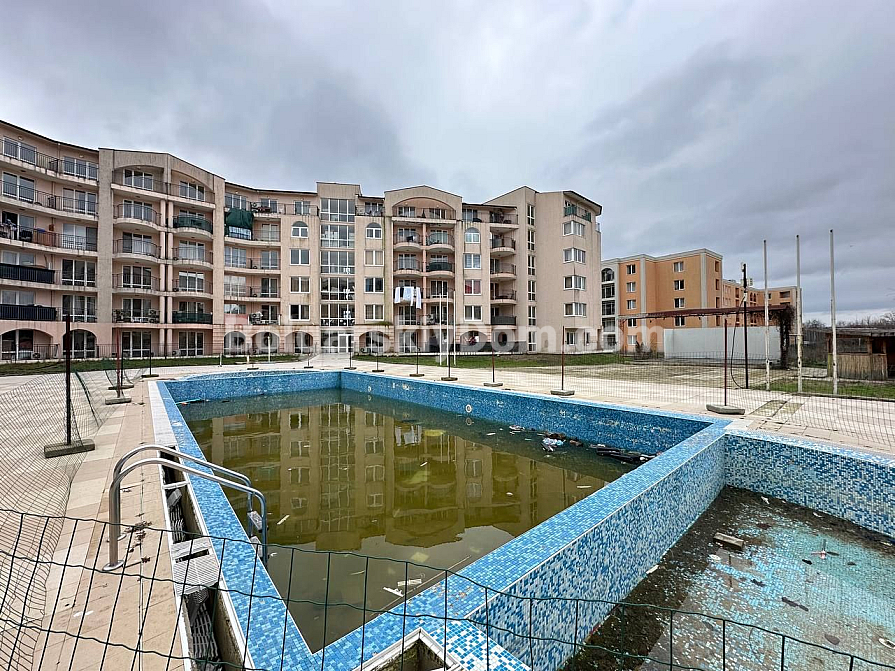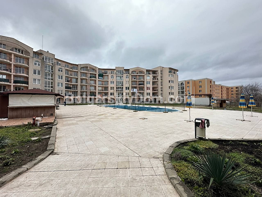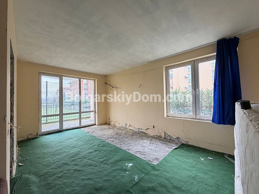An apartment suitable for year-round living and ready for becoming a great investment in Sunny Beach! Excellent price for a one-bedroom apartment in the residential complex Helena Residence. Apartment on the first floor of a five–story building, total area - 71 sq. m. Cosmetic repairs are required, sale unfurnished. The layout is comfortable: corridor-type with a separate bedroom and a large balcony facing the landscaped courtyard.