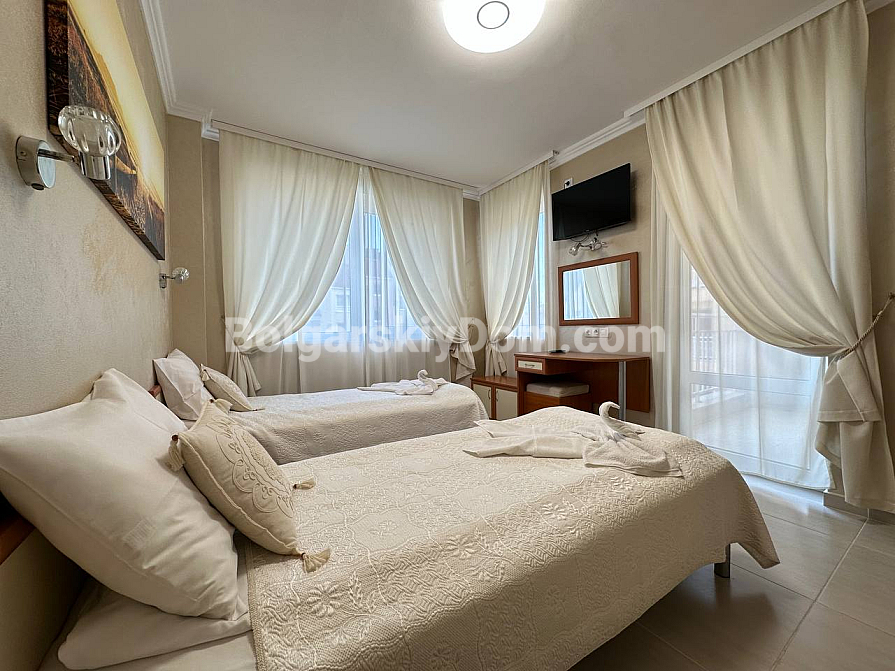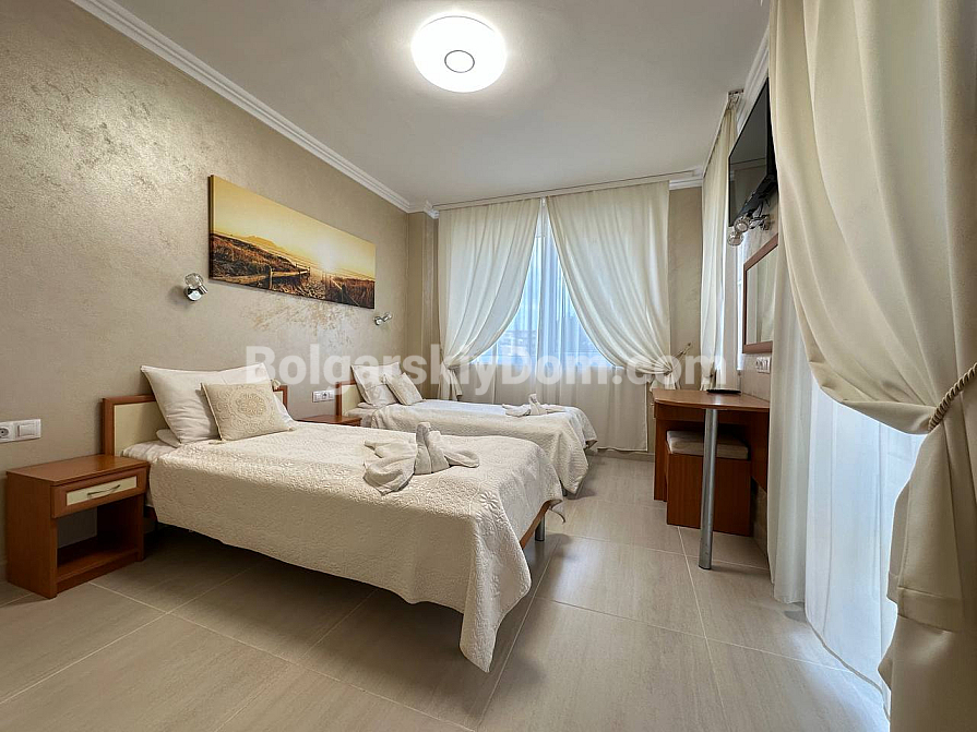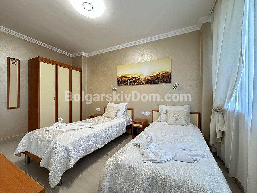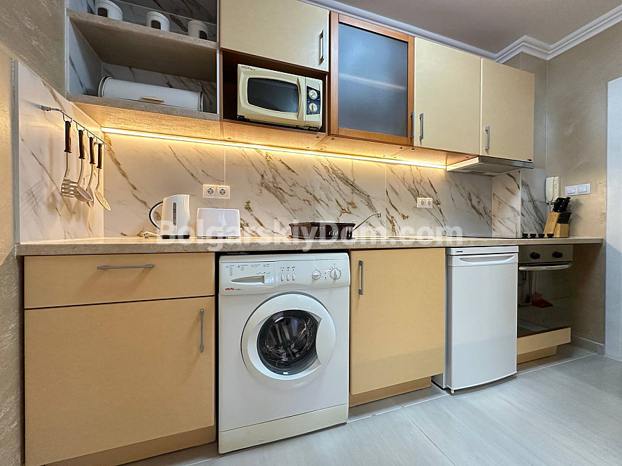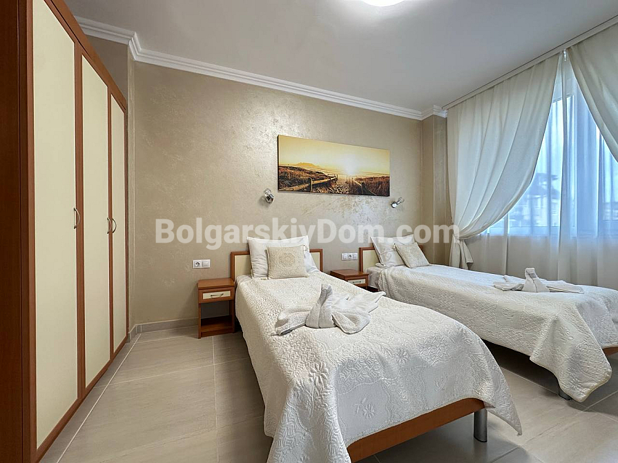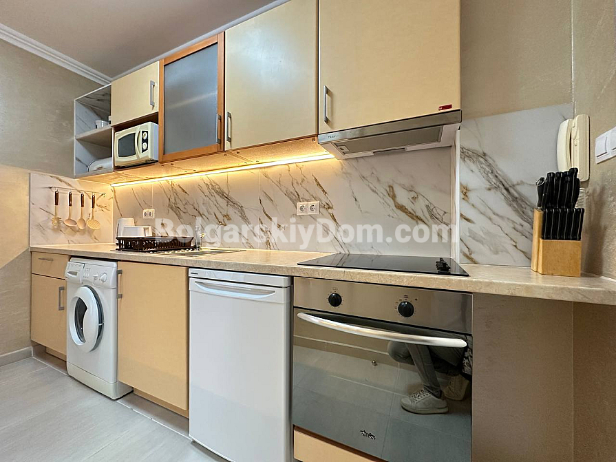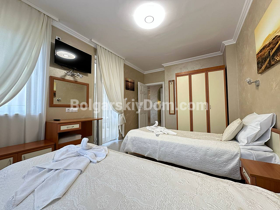 A worthy novelty in the top resort town of Bulgaria, Sunny Beach! A one–bedroom apartment in a year-round Sea Dreams complex is open for sale - with appliances, furniture, a convenient layout and in excellent technical condition. The apartment is suitable for a long stay: it has a comfortable layout with a kitchen located in a separate niche (washing machine, oven, stove, refrigerator), an autonomous bedroom with two beds, air conditioning and TV, and a spacious living room divided into a sitting area and a dining room. Fifth floor, total area 63 sq. m. Arrange with the agents of the Bulgarian House about a convenient time for you to inspect.