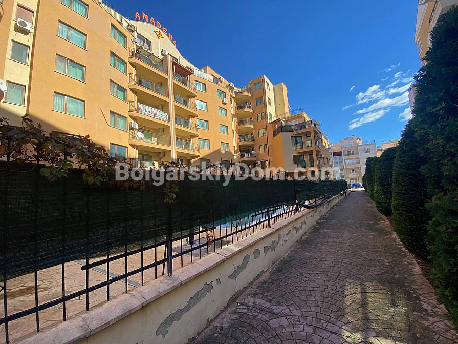 The "Amadeus 3" residential complex is a small and cozy community with a gated area. It features a swimming pool and parking, and its proximity to the sea, just 800 meters away, makes it an ideal place to live. This complex operates year-round, adding convenience and comfort to your stay. The market, shops, supermarkets, park, entertainment, and city amenities are all within a one-kilometer radius.