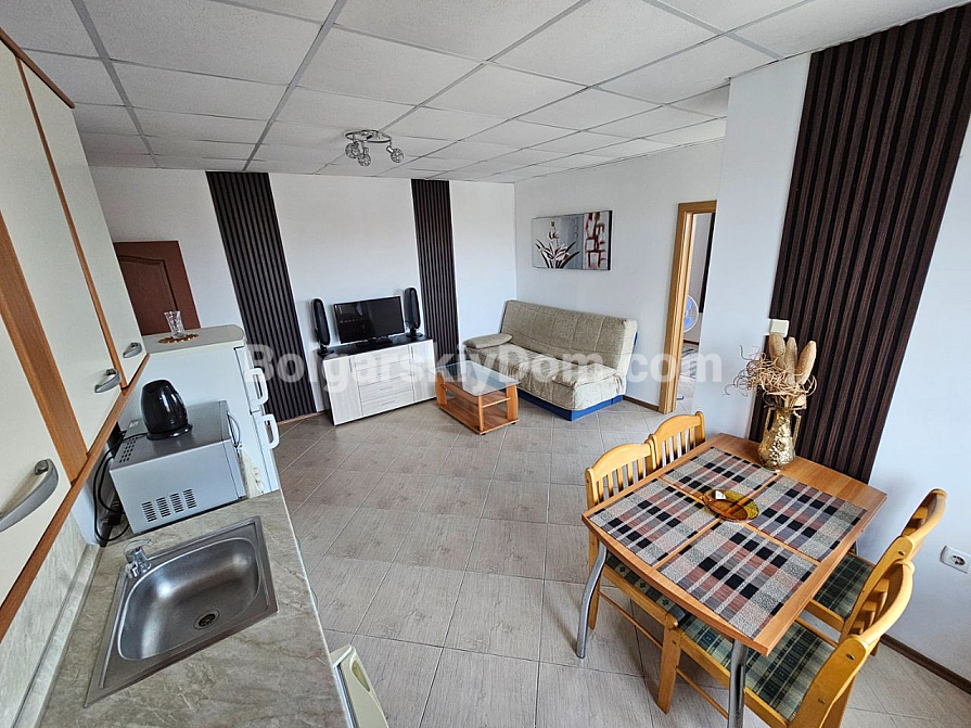 We invite you to become the owner of excellent real estate within an affordable budget! This is the "Amadeus 3" residential complex on the Sunny Beach! We present to your attention a cozy two-bedroom apartment with an area of 77 square meters, located on the 6th floor of a six-story building. This apartment is sold fully furnished and ready for your move-in. Its minimalist and practical interior in a classic style creates an atmosphere of comfort and harmony. The apartment is in excellent condition, guaranteeing you comfort from acquiring a new home. Great rental potential, available for viewings at a time convenient for you.