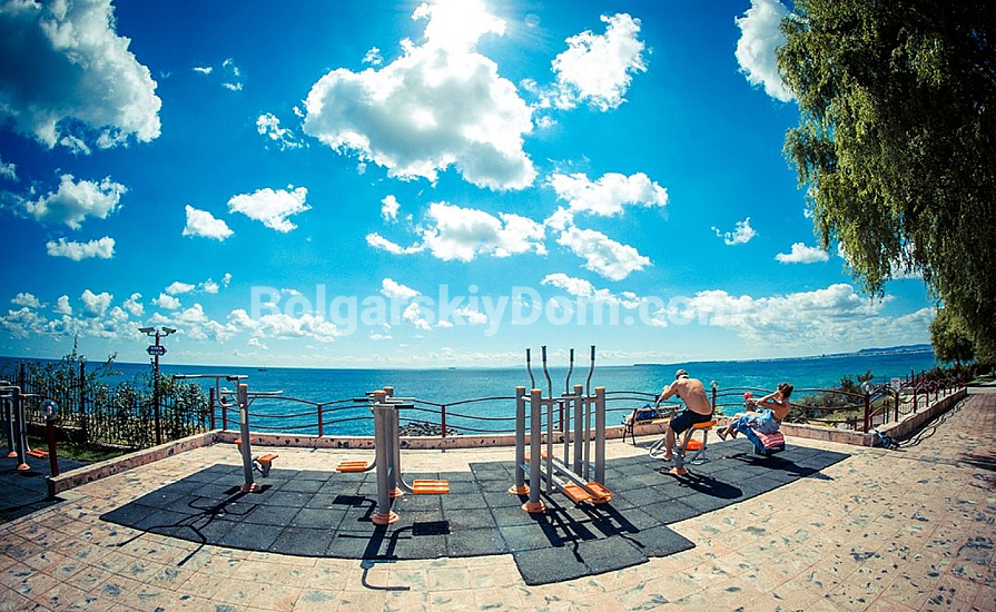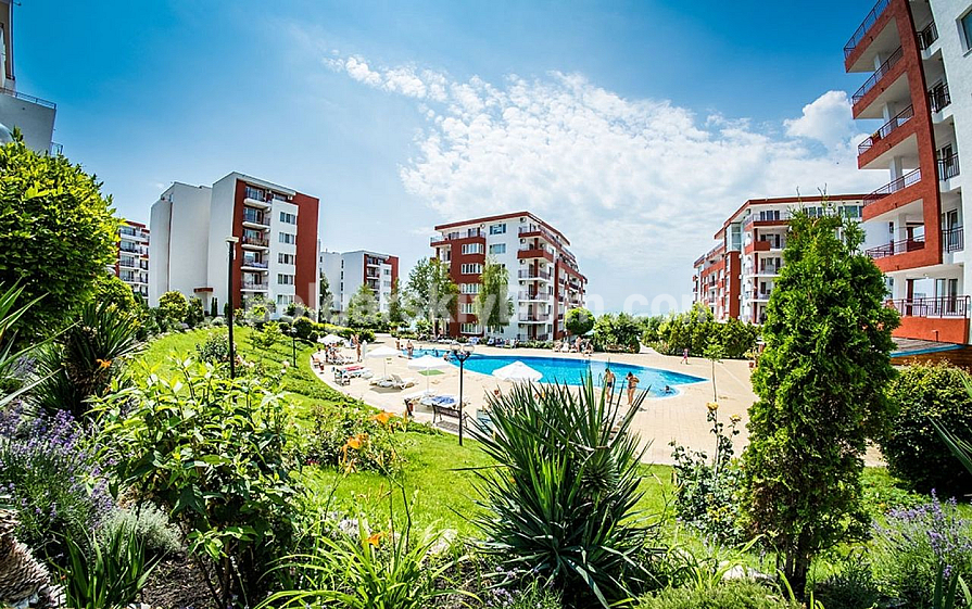 The Marina View Fort Beach complex is located in a picturesque area surrounded by greenery on an elevated position, offering breathtaking views of Sunny Beach Bay and the old town of Nessebar. It is just 50 meters from the sea, combining fresh mountain and sea air, creating ideal conditions for relaxation and living. The complex has a vast territory with numerous amenities, including swimming pools, restaurants, a fitness center, shops, and other infrastructure facilities, ensuring a comfortable stay, long-term residence, and high demand among renters.