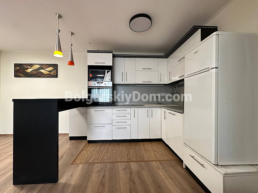 The spacious living room is furnished with comfortable furniture and is combined with the kitchen, which is equipped with all necessary appliances (refrigerator, oven, dishwasher, stove, microwave). All rooms have access to a large terrace where you can enjoy the fresh air and beautiful mountain views.