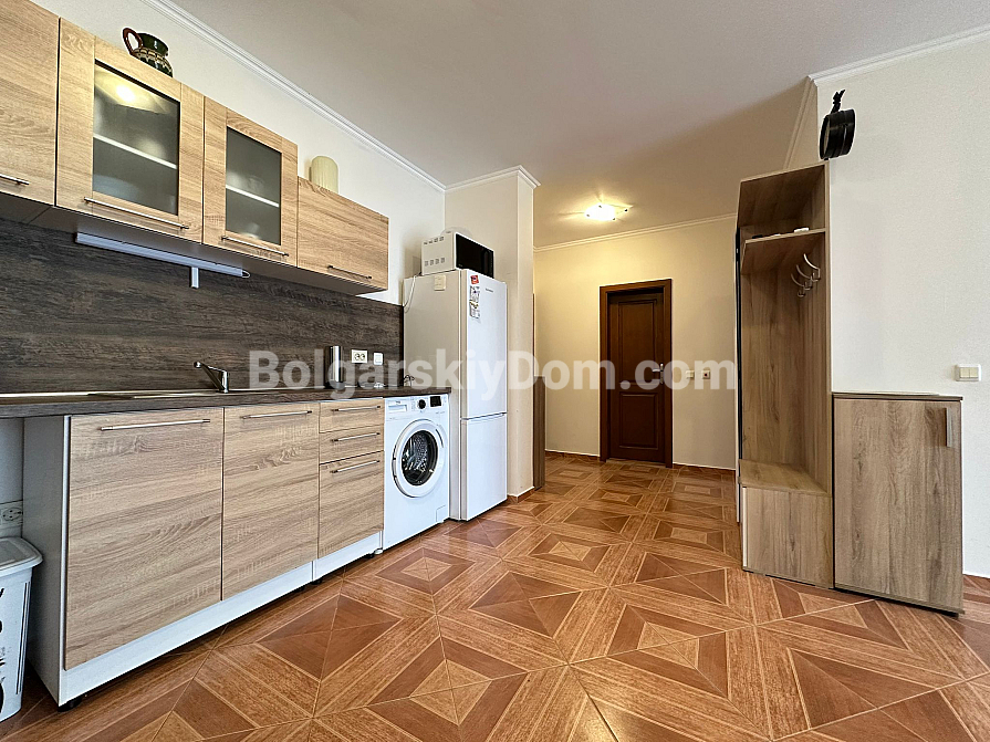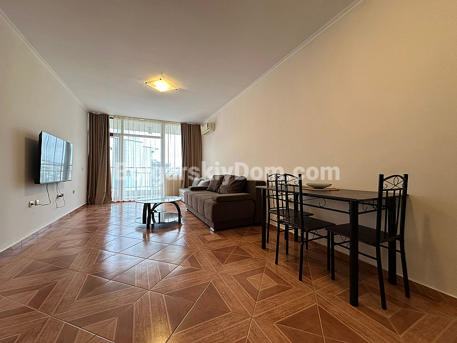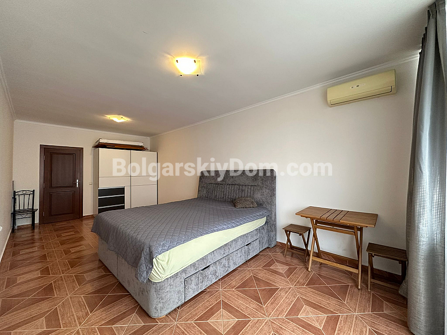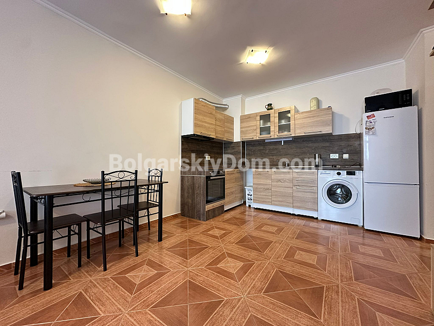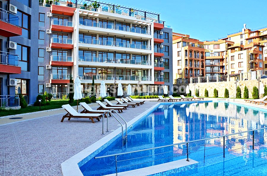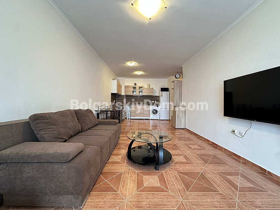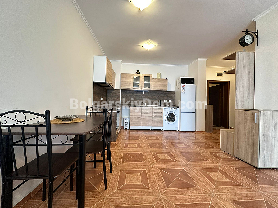 The complex is located in a quiet and well-maintained area, just 37 km from Burgas Airport and 90 km from Varna. Nearby, you will find a year-round grocery store, pharmacy, restaurant, and fruit and vegetable market. The nearest large supermarket is only 600 meters away. The sound insulation in the apartment is excellent, and the complex territory is clean and well-kept. The "MARINA" yacht club is within a 10-15 minute walk. Rental of a private parking space is available for the season.