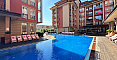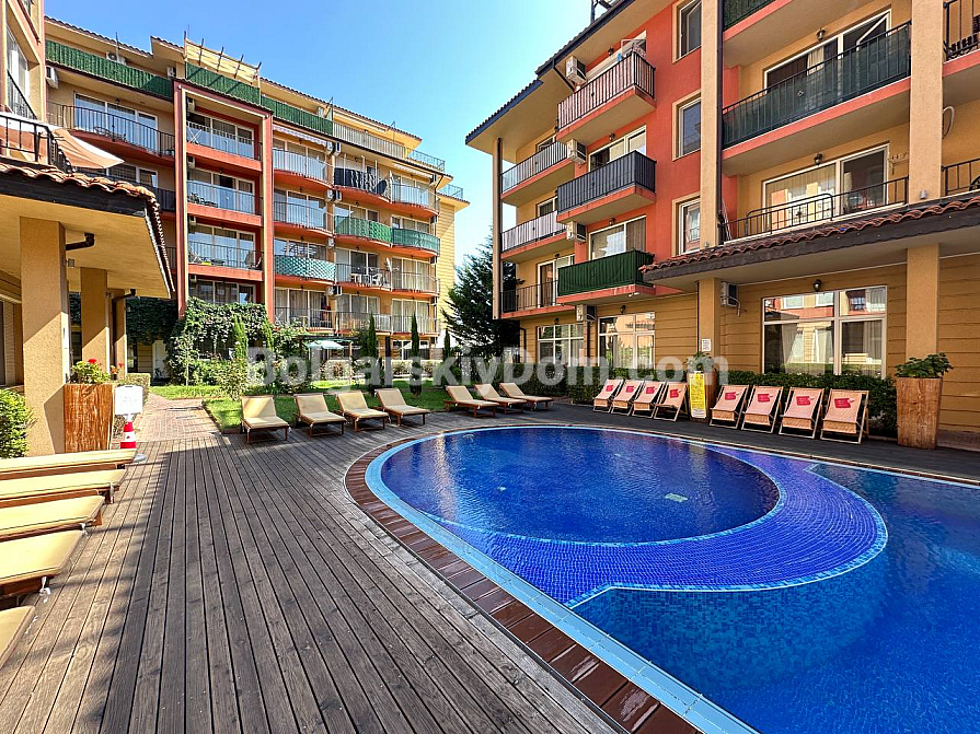 Sunny View Central is located in the quiet central part of Sunny Beach, just 500 meters from Cocoa Beach, and surrounded by lawns with palm trees where residents can stroll. The complex offers three pools – one with a shallow children's area, a gym with exercise machines, a spa with a sauna and massage rooms – all available on the premises, plus a restaurant with a terrace and a bar by the water. 24-hour security, parking under video surveillance, and a children's playground with carousels are occupied by little ones until evening. Just a few steps away is the Janet supermarket and the promenade with its charming old streets – a place that is convenient both for leisure and for earning rental income.