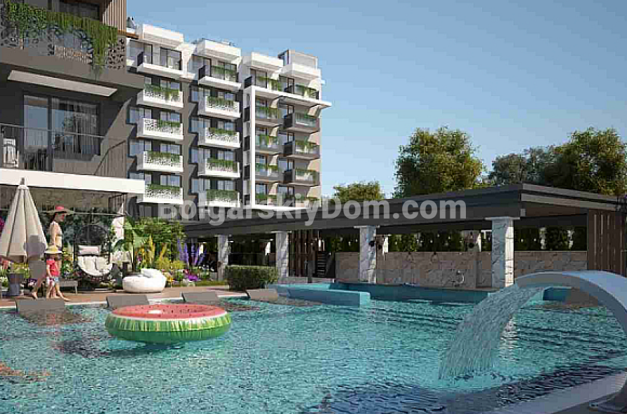 We offer for sale a modern one-bedroom apartment with a pleasant view of the swimming pool, located in the new premium SPA complex Sweet Homes 8 in the central part of Sunny Beach resort. The complex combines urban comfort with a relaxing and wellness-oriented atmosphere, making it an excellent choice both for permanent living and investment. The apartment is offered fully finished and ready to move in. It features high-quality interior finishing, installed entrance and interior doors, air conditioning, a fire safety system, and a fully equipped bathroom with modern sanitary fittings. The total area of the apartment is 44 sq.m. It is situated on the third floor of a building with an elevator, ensuring everyday comfort and convenience.
