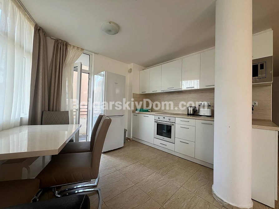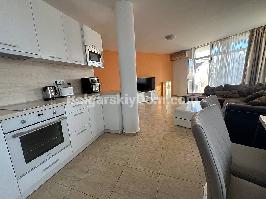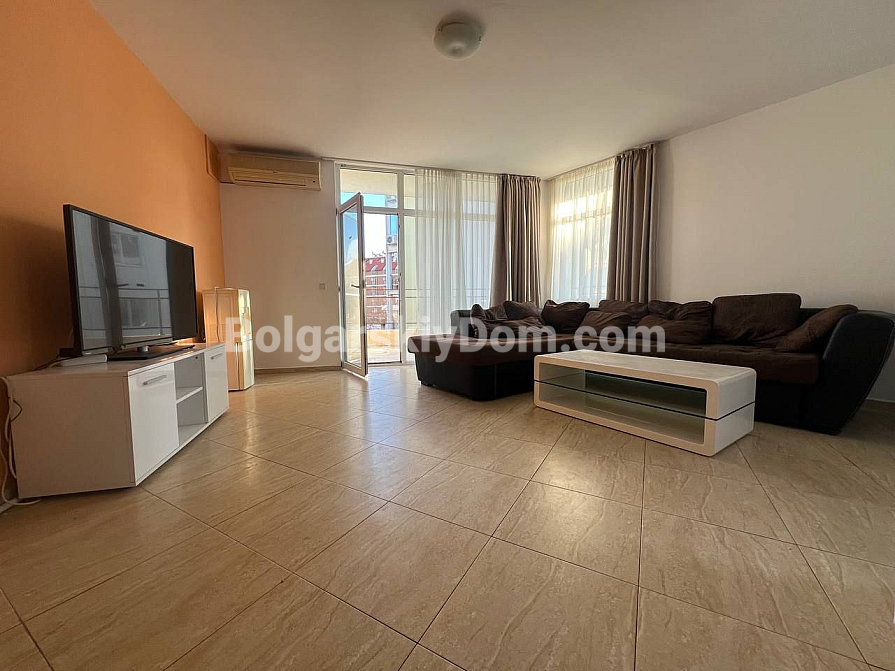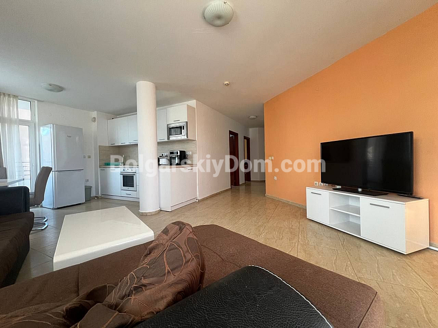 New offer! We present to your attention a spacious two-bedroom apartment in the Sun Village complex in Sunny Beach, practically at the very heart of resort life! It is located on the third floor of a six-story building and occupies 101 sq.m. The apartment will certainly delight its new owners with a fresh renovation, stylish furniture, and all necessary appliances. From the balcony, there is a picturesque view of the pool — a perfect spot for enjoying your morning coffee or relaxing in the evening. The apartment is fully ready to move in, and the maintenance fee is just €8 per year, which makes it even more attractive. The sea is only 650 meters away.