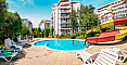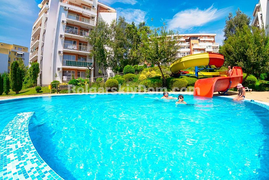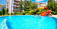 The Crown Fort Club residential complex is located just 150 meters from the beach and, compared to neighboring complexes, has quite an extensive infrastructure: there are restaurants, grocery stores, a fitness room, a sauna, tennis courts, billiards, mini-golf, and parking. The territory is secured with 24-hour security. Nearby, there is a public transport stop, a supermarket, and dozens of other amenities. Maintenance fee: €14.5.