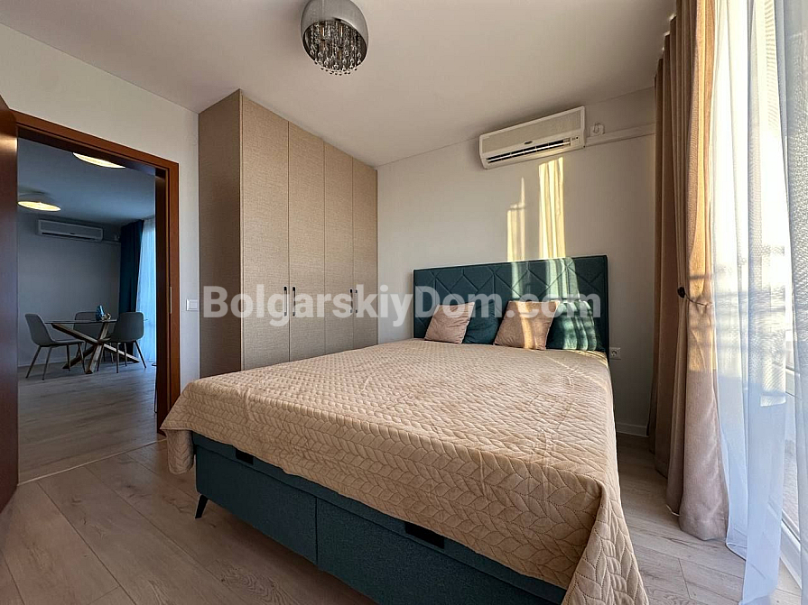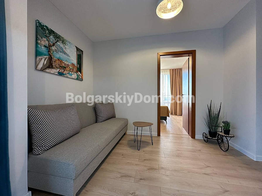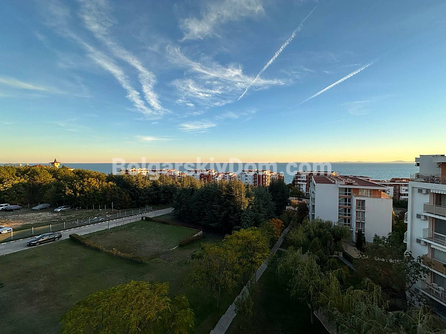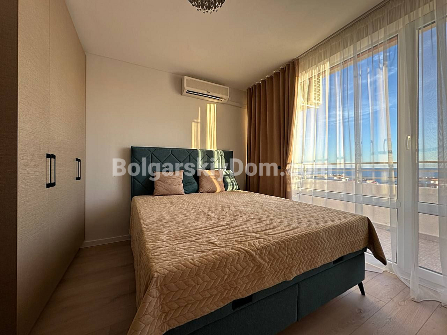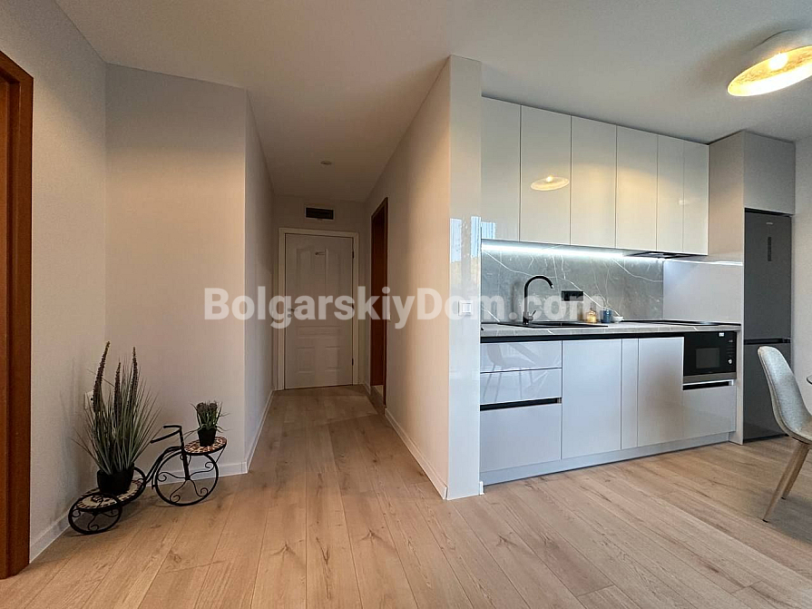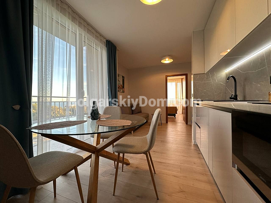Hot new listing! Sea view, two terraces, and a minimalist interior – you will find all of this in this offer! Bolgarskiy Dom presents a one-bedroom apartment with an area of 57 sq.m., located on the 5th floor out of 6 in a residential complex on the second line from the sea in Saint Vlas, which you have certainly heard of – Crown Fort. A spacious living room with access to a terrace, a separate bedroom with custom furniture and another panoramic terrace, new renovation and built-in appliances: the apartment is fully ready for living or renting out, with no additional investment required. Pay attention to the kitchen in a niche with a window – a rare layout format and definitely a convenient one!