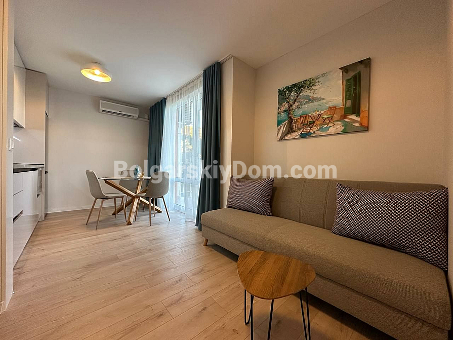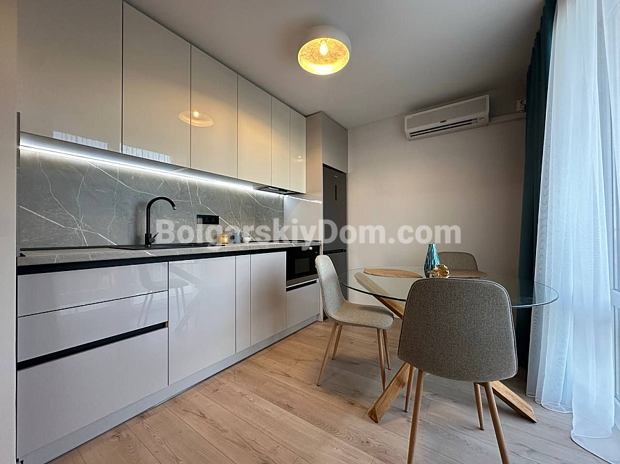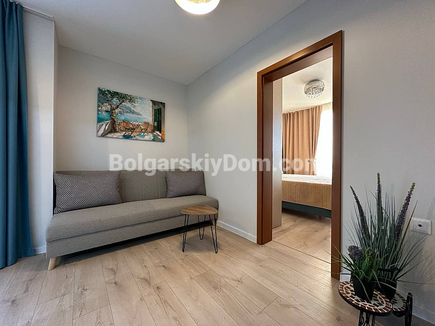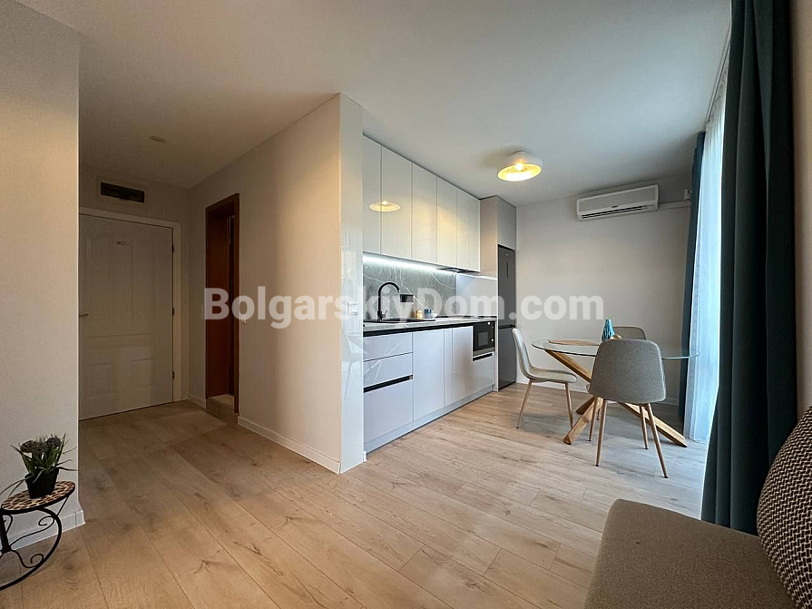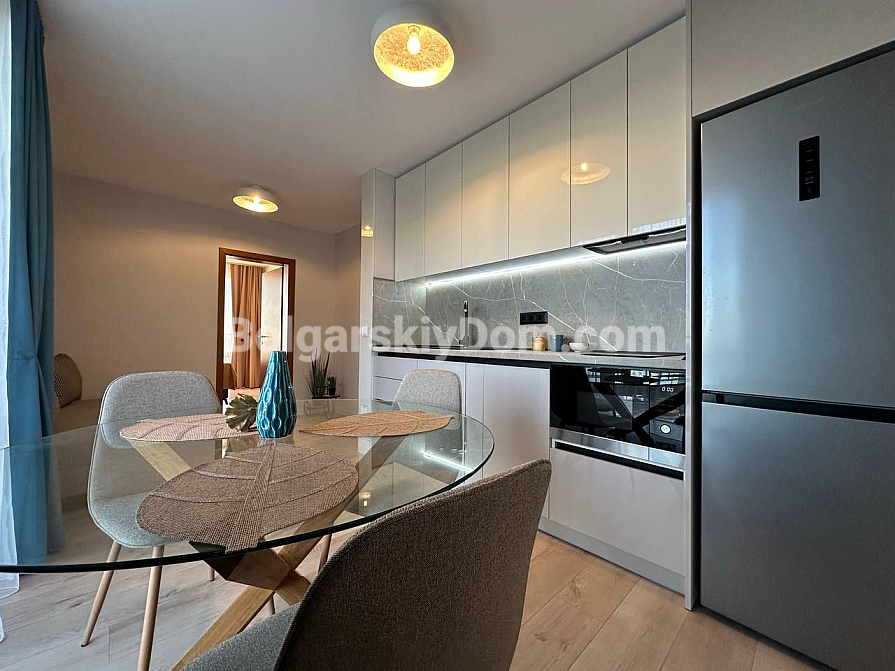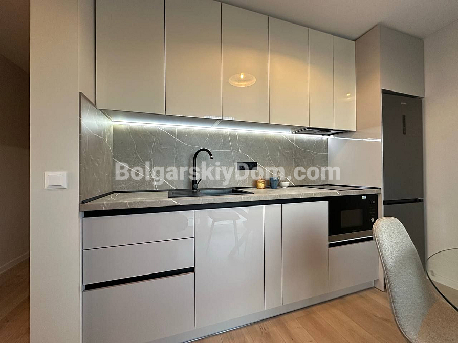 Hot new listing! Sea view, two terraces, and a minimalist interior – you will find all of this in this offer! Bolgarskiy Dom presents a one-bedroom apartment with an area of 57 sq.m., located on the 5th floor out of 6 in a residential complex on the second line from the sea in Saint Vlas, which you have certainly heard of – Crown Fort. A spacious living room with access to a terrace, a separate bedroom with custom furniture and another panoramic terrace, new renovation and built-in appliances: the apartment is fully ready for living or renting out, with no additional investment required. Pay attention to the kitchen in a niche with a window – a rare layout format and definitely a convenient one!
