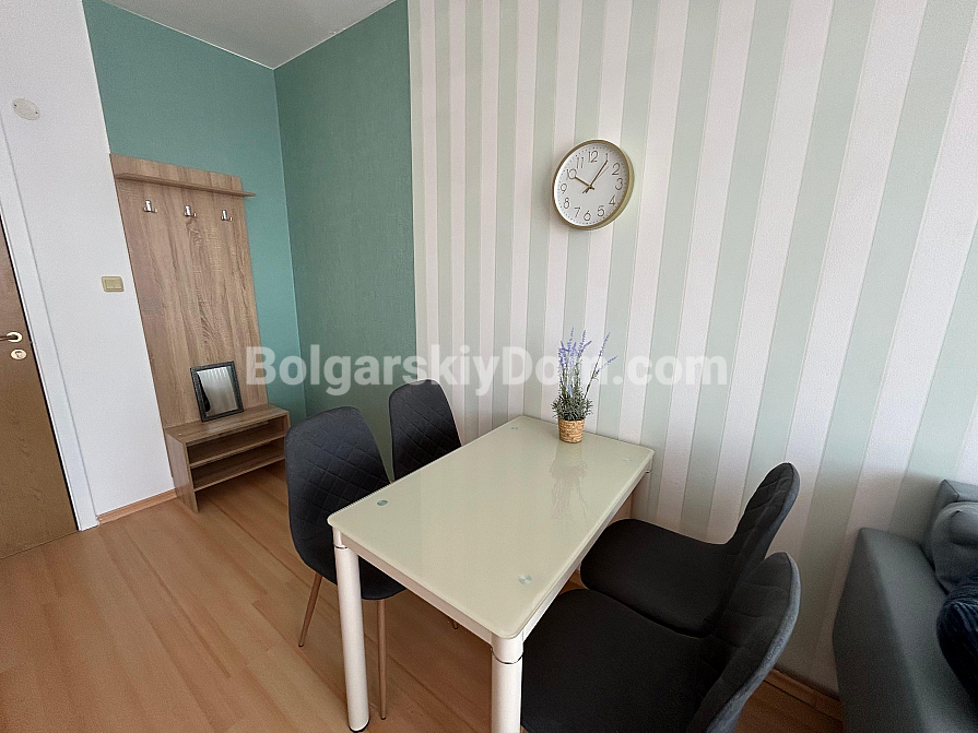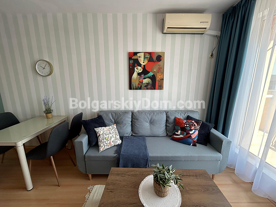 The complex has a well-maintained and secure territory operating all year round. Residents can enjoy several swimming pools, a restaurant and café, a shop, a tennis court, sports grounds for volleyball, mini-football, and basketball, mini-golf, children’s playgrounds, and convenient parking. Maintenance fee: €580 per year, which covers the use of the facilities, security, cleaning of common areas, and landscaping. Distance to Burgas Airport — 25 km, and to Varna Airport — around 110 km. The complex is ideal for year-round living or as an investment property by the sea.