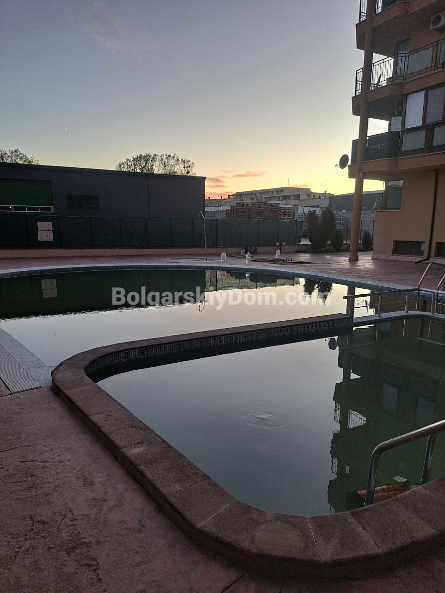 The Amadeus 5 complex is located in the central part of Sunny Beach, just a 10–15 minute walk from the main beach and only minutes from all key resort infrastructure. Within walking distance are supermarkets, restaurants, beauty salons, pharmacies, bus stops, as well as the largest water park and the biggest gym. The gated and secured complex has a spacious pool with a separate children’s section, a relaxation area with sun loungers, parking, and video surveillance both on the grounds and inside the building. The building is equipped with two elevators, and the entrances are well maintained. The complex is well-kept and suitable not only for seasonal vacationing but also for permanent residence, which is especially valuable for families planning to live by the sea year-round.