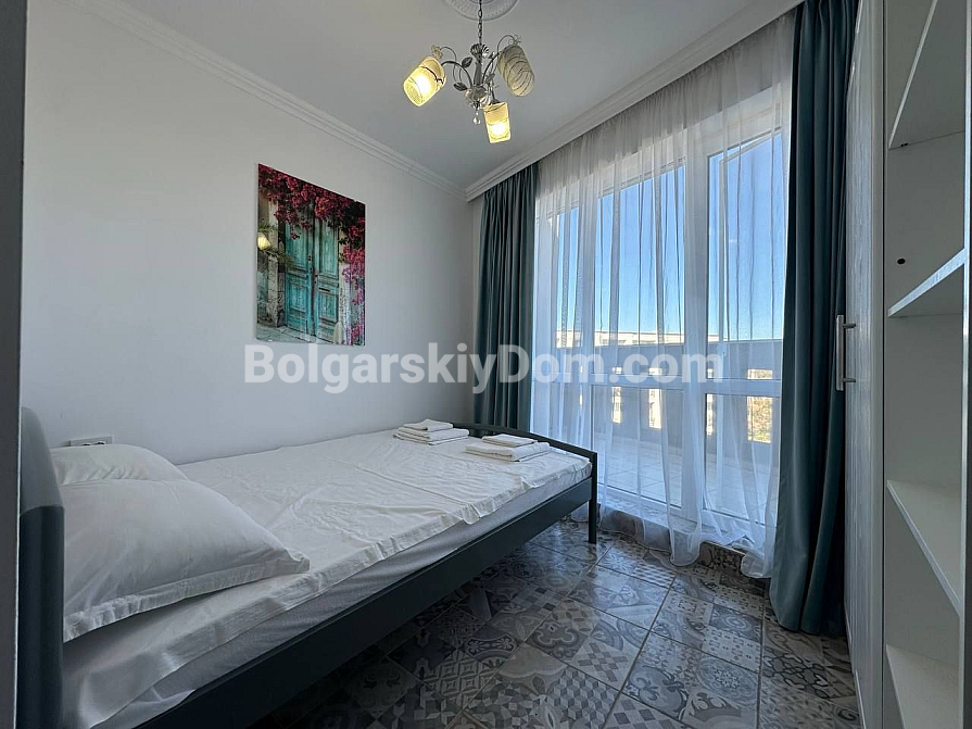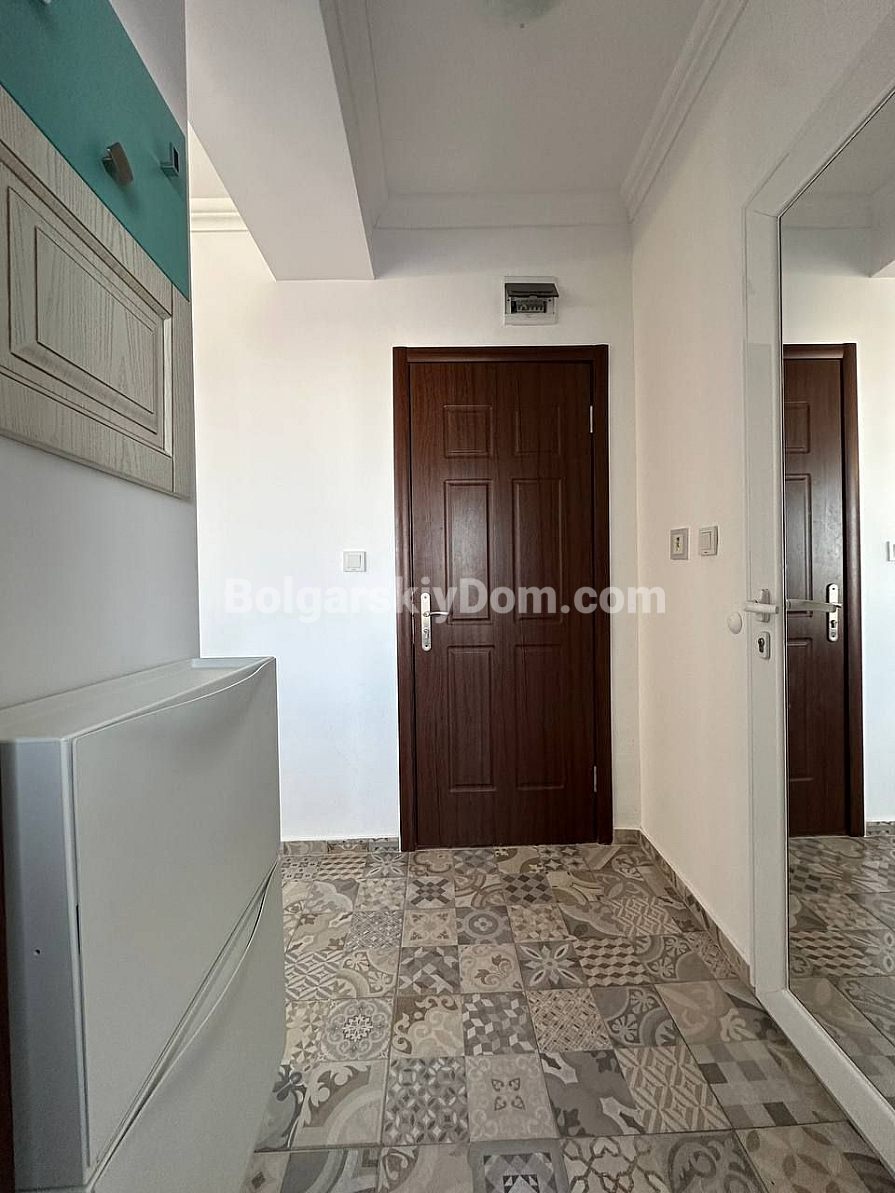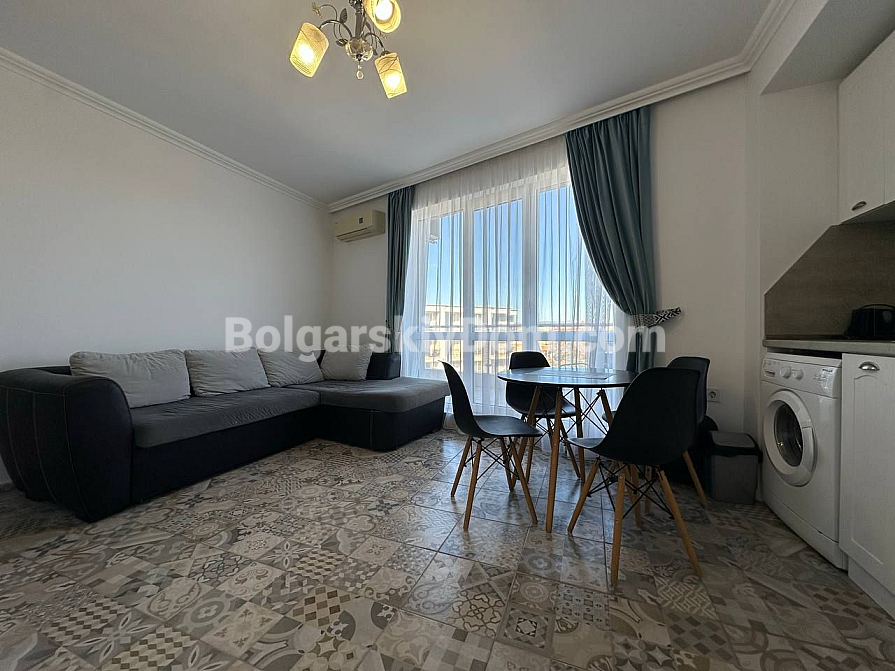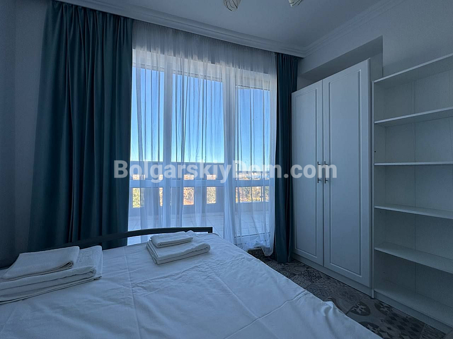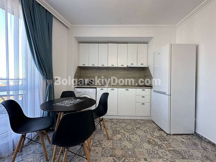The sea right outside your window! New addition to the housing stock from Bolgarskiy Dom agency: we offer a stylish one-bedroom apartment of 62 sq.m. on the fifth floor of a residential building in Ravda. The apartment with a magnificent sea view includes a living room with a comfortable kitchen, a separate bedroom, a bathroom with a bathtub, and a large terrace for evening relaxation. Fully furnished, with modern appliances and a bright minimalist design, the apartment is ready to move in. Low maintenance fee of 300 BGN per year and proximity to the beach make this purchase attractive for vacation or rental. Maximum liquidity only with us – call now!