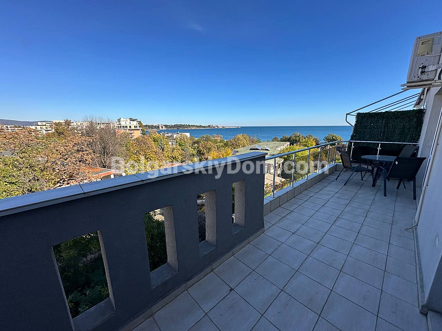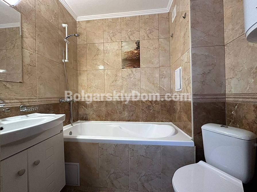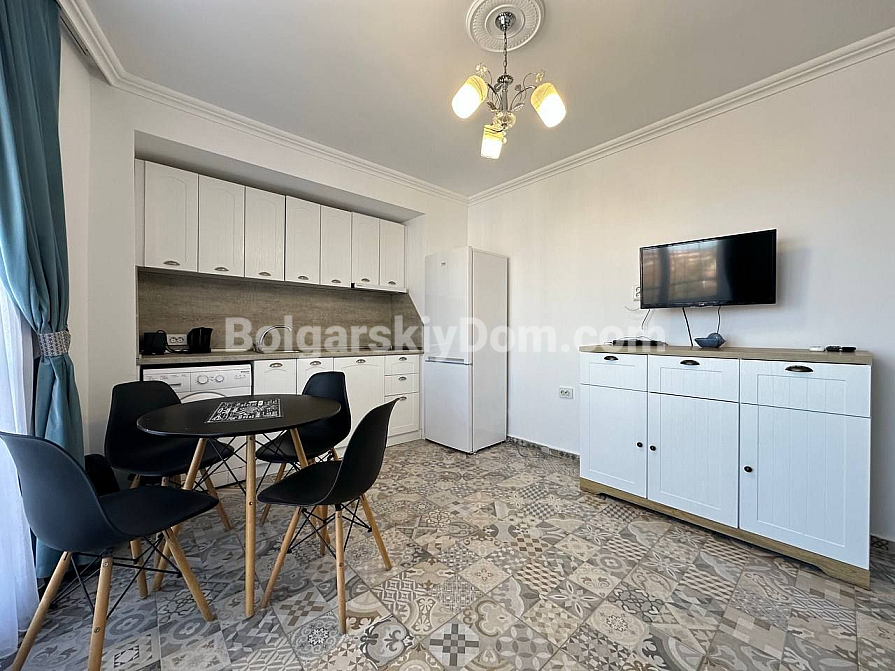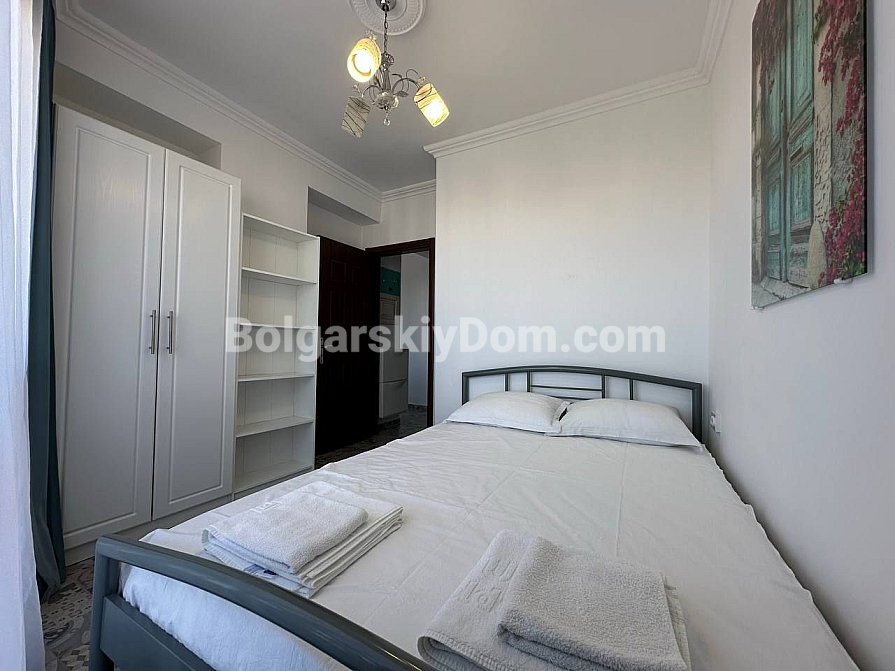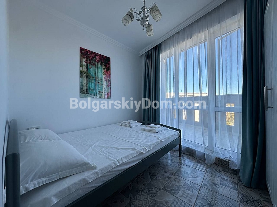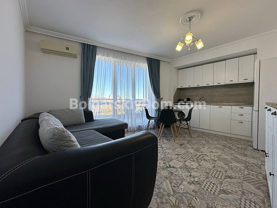The sea right outside your window! New addition to the housing stock from Bolgarskiy Dom agency: we offer a stylish one-bedroom apartment of 62 sq.m. on the fifth floor of a residential building in Ravda. The apartment with a magnificent sea view includes a living room with a comfortable kitchen, a separate bedroom, a bathroom with a bathtub, and a large terrace for evening relaxation. Fully furnished, with modern appliances and a bright minimalist design, the apartment is ready to move in. Low maintenance fee of 300 BGN per year and proximity to the beach make this purchase attractive for vacation or rental. Maximum liquidity only with us – call now!