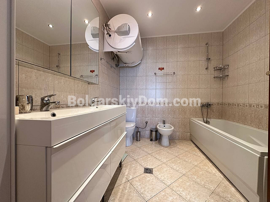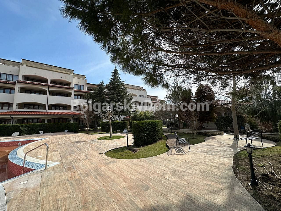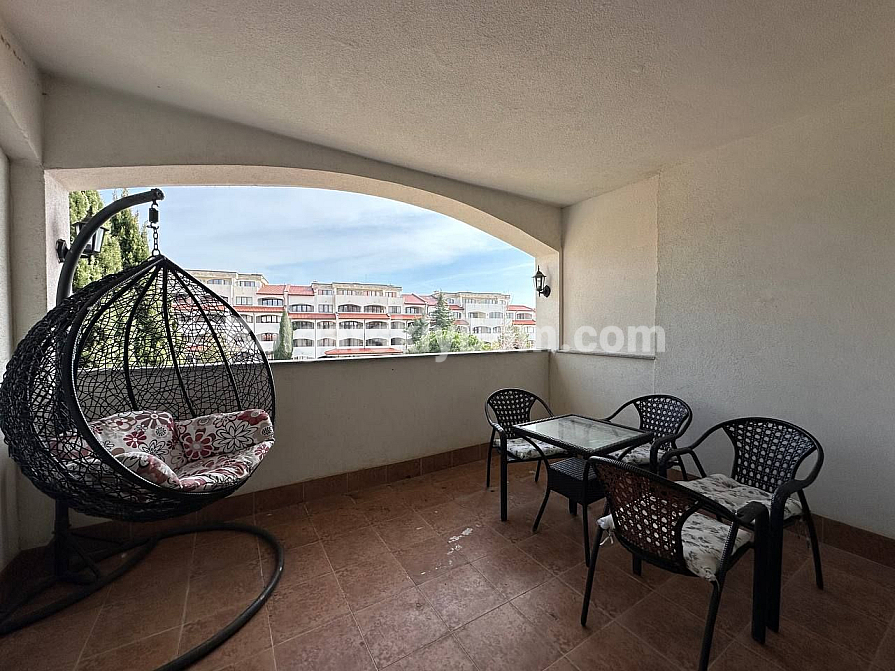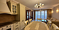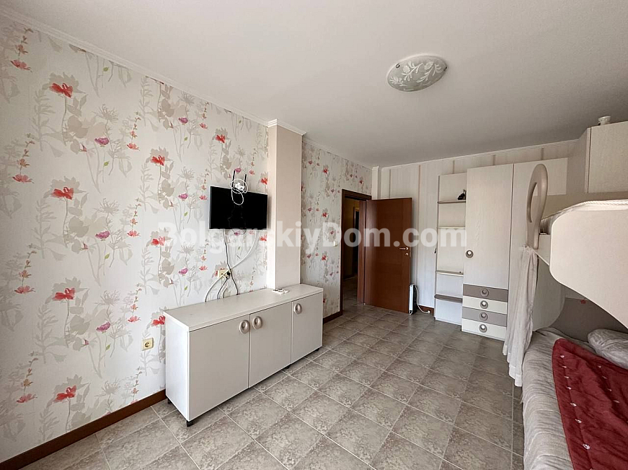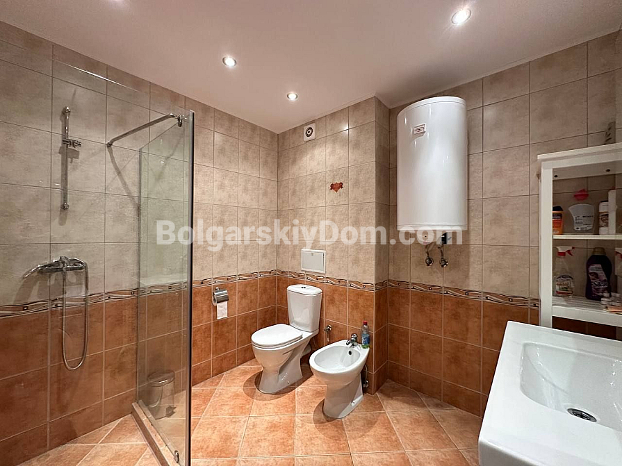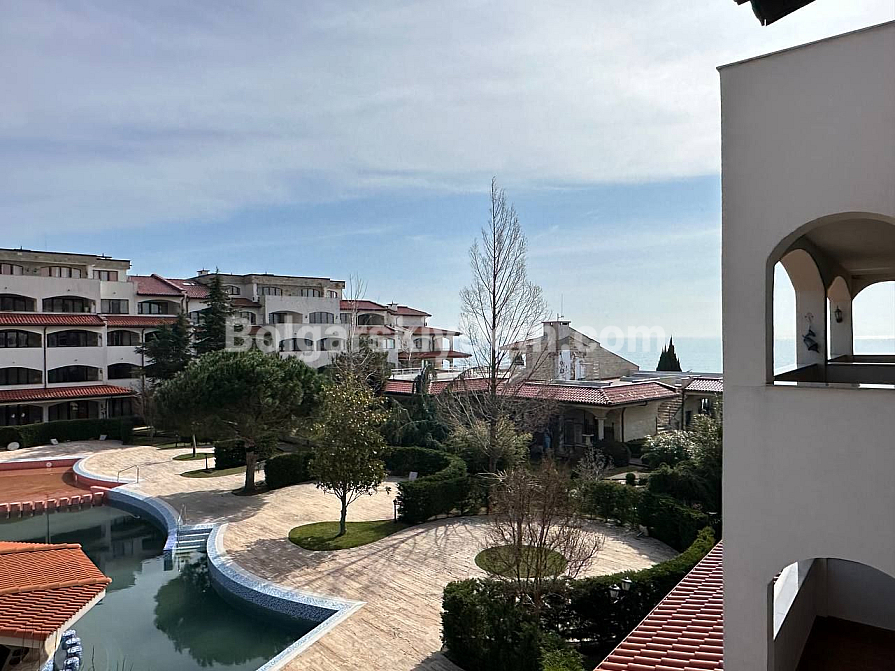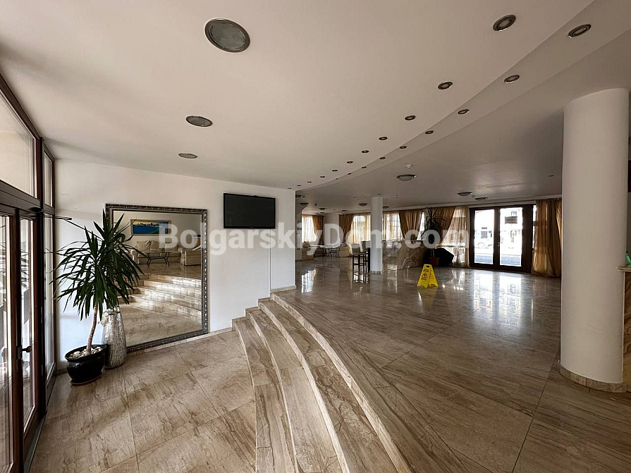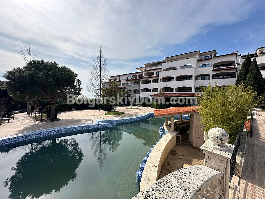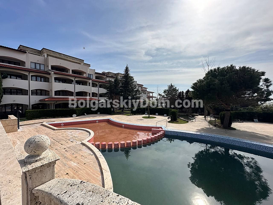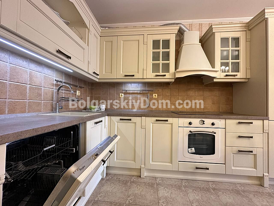 Panoramic premium-class apartment! Bolgarskiy Dom real estate agency presents to your attention a spacious two-bedroom apartment in the elite complex Casa Real in Sveti Vlas. With a total area of 149.25 sq.m., it is one of the largest and most comfortable in its class. The apartment consists of an entrance hall, a spacious corridor, a large living room with a kitchen and dining area, two bedrooms, two bathrooms, and two terraces. The property is fully furnished and equipped for permanent residence: it has all necessary appliances, including a refrigerator, stove, and washing machine, as well as dishes and kitchen utensils. Special attention should be paid to the spacious walk-in closet and the en-suite bathroom in one of the bedrooms.