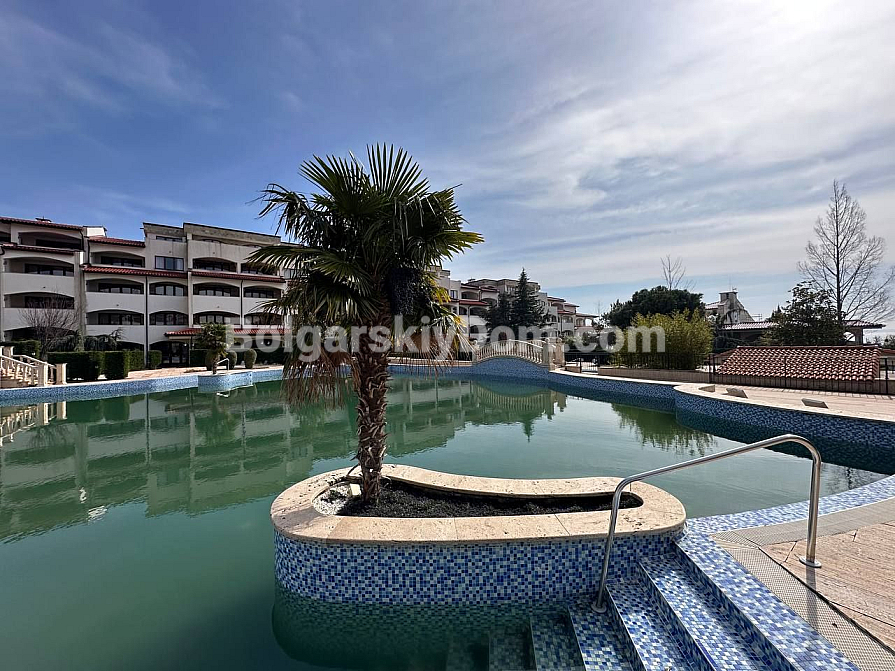The Casa Real complex is located in one of the most prestigious areas of Sveti Vlas. Its main advantage is the picturesque view of the pool and the sea, which opens from the terrace. Here you will find all the necessary infrastructure for a comfortable and luxurious stay. The complex is under 24-hour security. The maintenance fee is only 12 euros per sq.m., and the distance to the sea is just 30 meters – only one minute. We are waiting for your call!