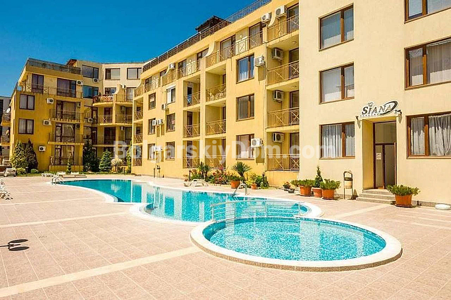 The Siana complex is a great choice if you value ready-made comfort and proximity to all infrastructure. Shops, restaurants, bars, banks, and pharmacies are within walking distance. For those who enjoy entertainment, there are beauty salons, massage centers, nightclubs, and discos nearby. This allows you to enjoy both relaxing by the pool and the lively resort atmosphere. The maintenance fee is fixed at 450 euros, and the sea is only 350 meters away.