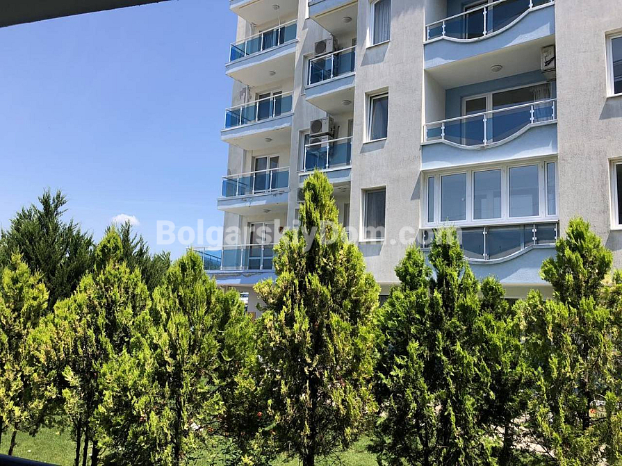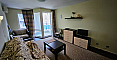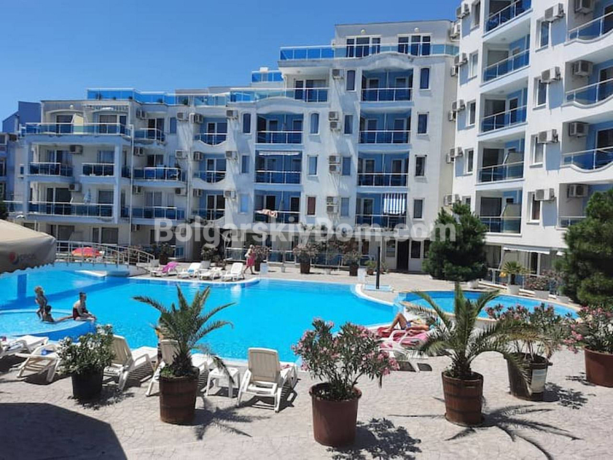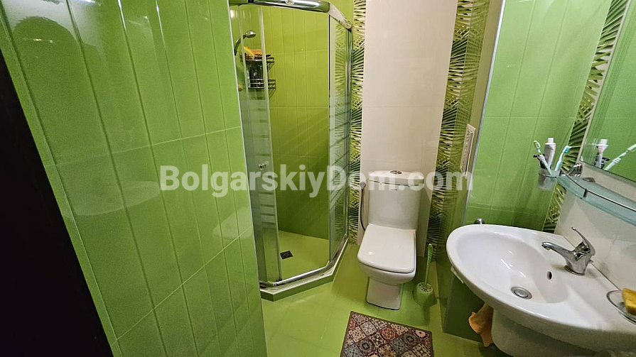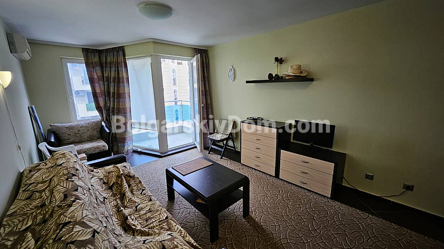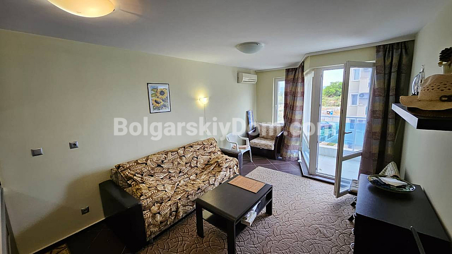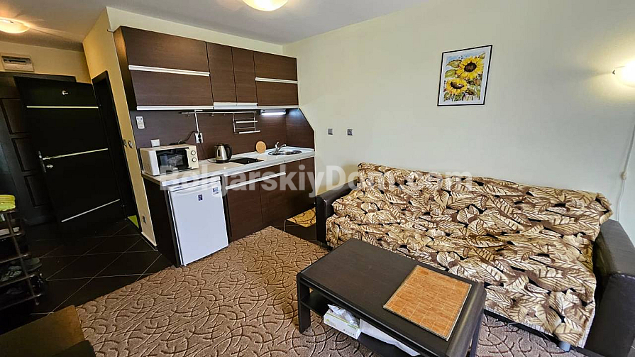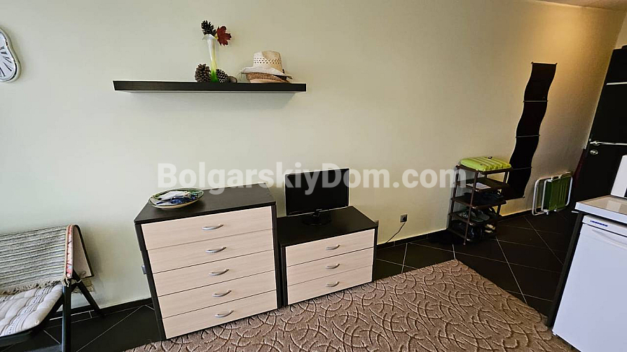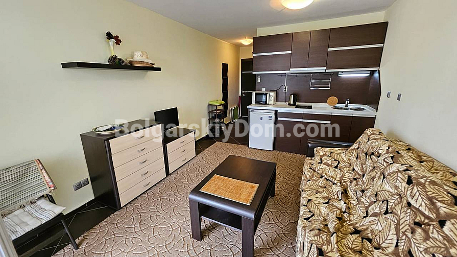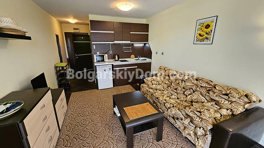A spacious studio in the Odyssey complex in Nessebar has appeared in our catalog. Its total area is 41 sq.m., and it is located on the third floor, which makes it fully suitable as an investment-attractive and liquid property. The apartment consists of a living room with a kitchenette, a bathroom with a shower, and a terrace. It is fully furnished with new furniture and appliances, so you can move in right away and enjoy life by the sea. The complex itself is built to high European standards, including sound and waterproof insulation.