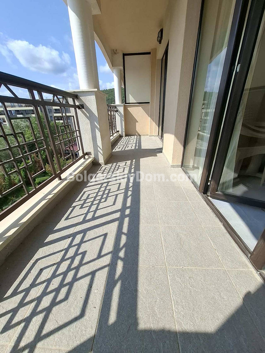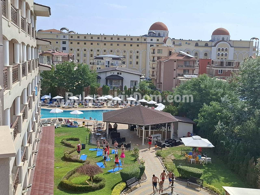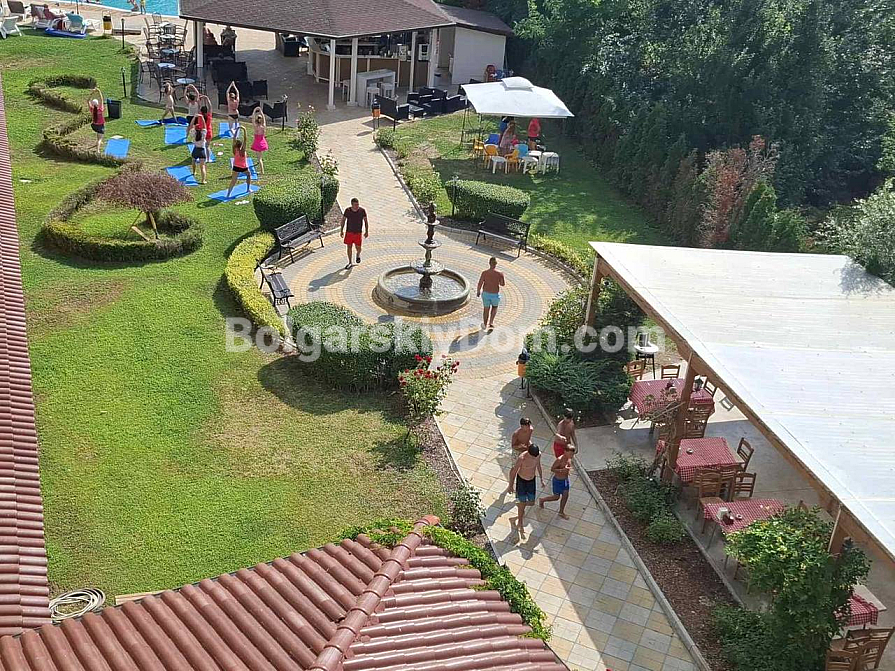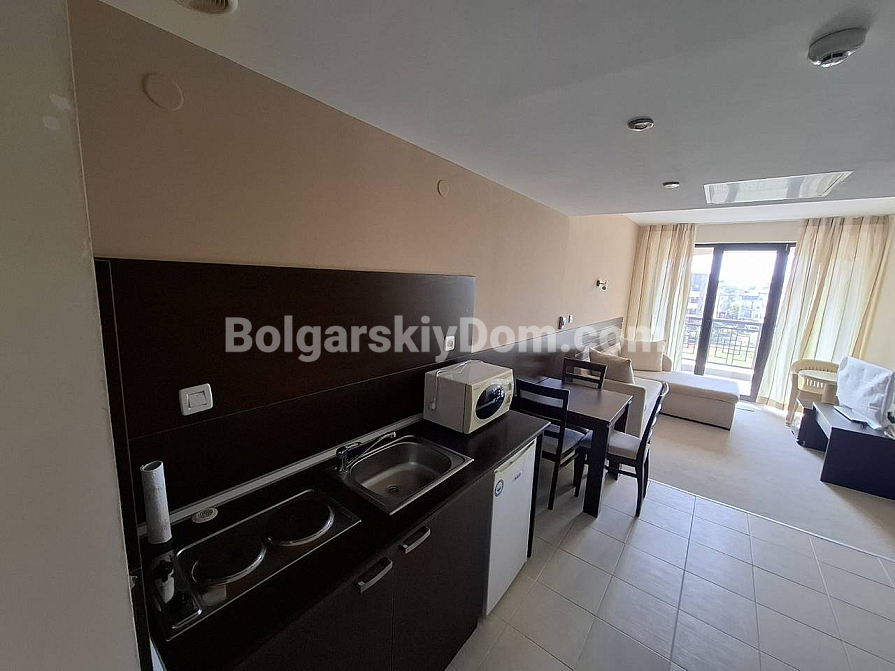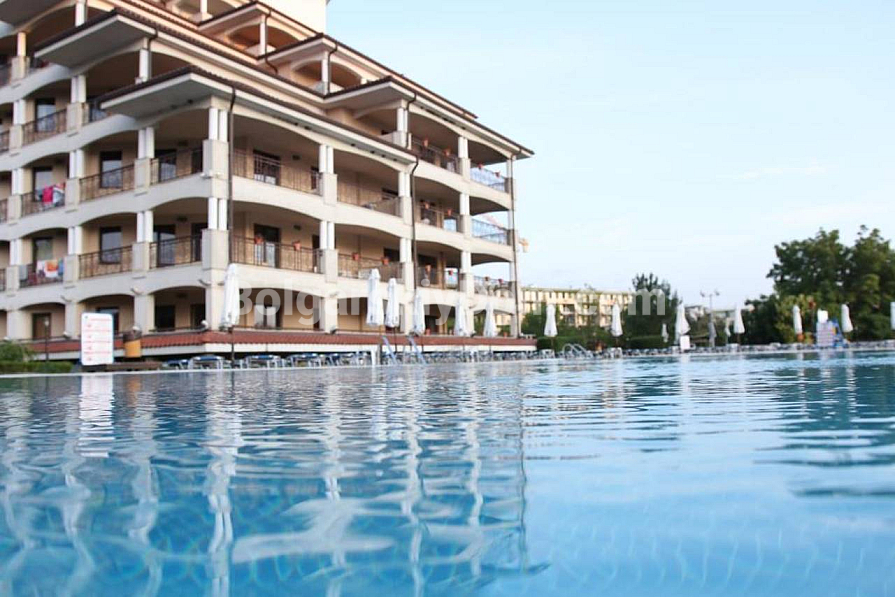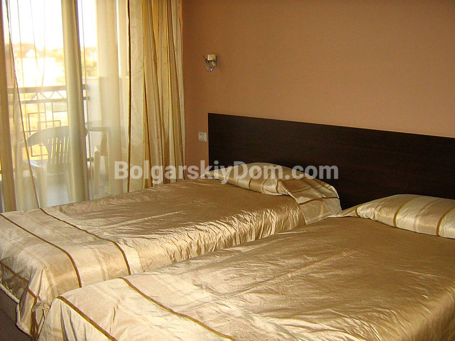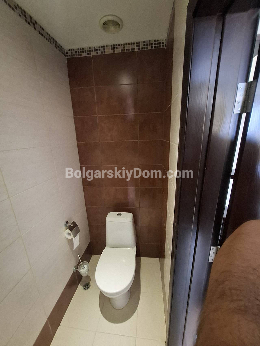 Bolgarskiy Dom presents! Our catalog now features a unique apartment in the four-star Casablanca Hotel. The beach is only 100 meters away, yet the location is quiet and pleasant. The apartment has an area of 70.6 sq.m., is located on the fourth floor, and offers a wonderful view of the sea, city, and mountains — a real combo. The layout includes a living room with a kitchenette, a separate dressing room, a bedroom, two bathrooms, and a shared terrace. The property is fully equipped with all household appliances, air conditioning, internet, and digital TV. Individual meters for electricity and water are installed.