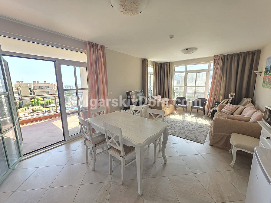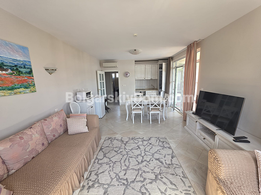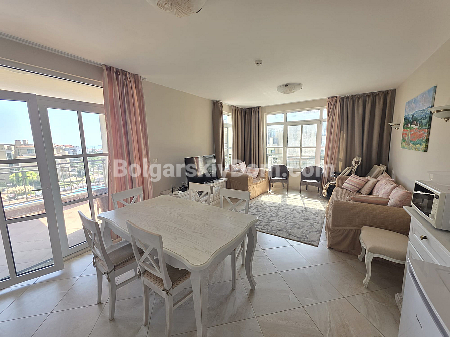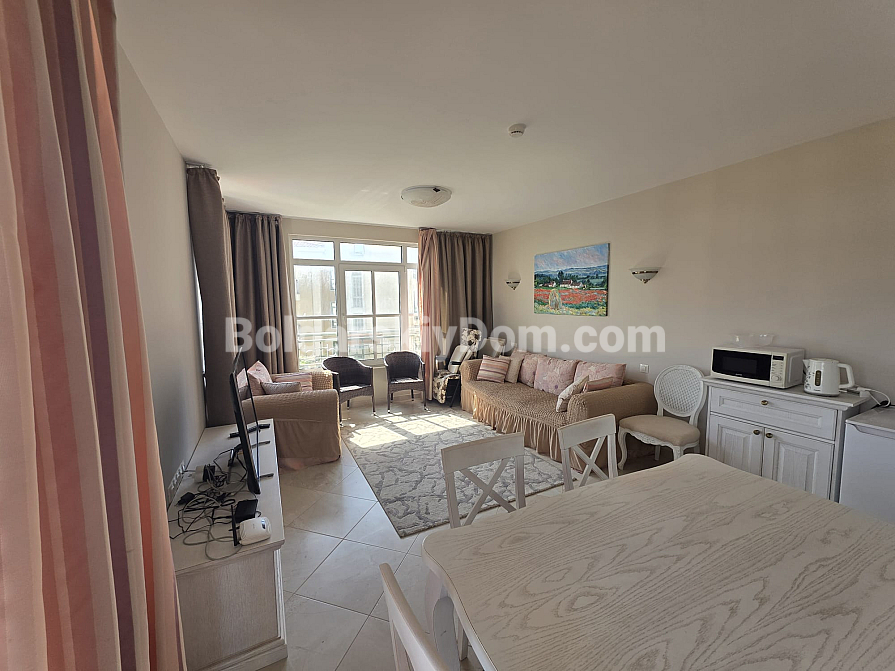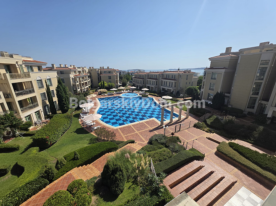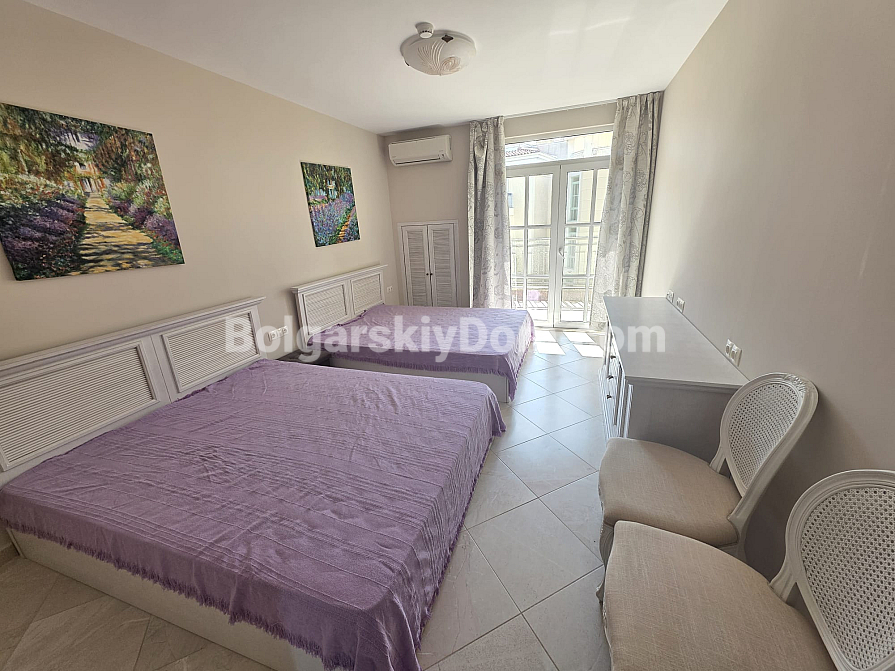 The Flores Garden residential complex is located in the resort town of Chernomorets, just 100 meters from the beach. Its excellent location and modern level of service make this apartment a perfect option both for family summer vacations and for permanent living or rental. The territory is spacious, with landscape design, a huge swimming pool, and a range of conveniences nearby.
