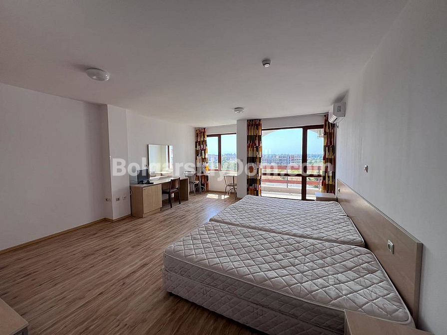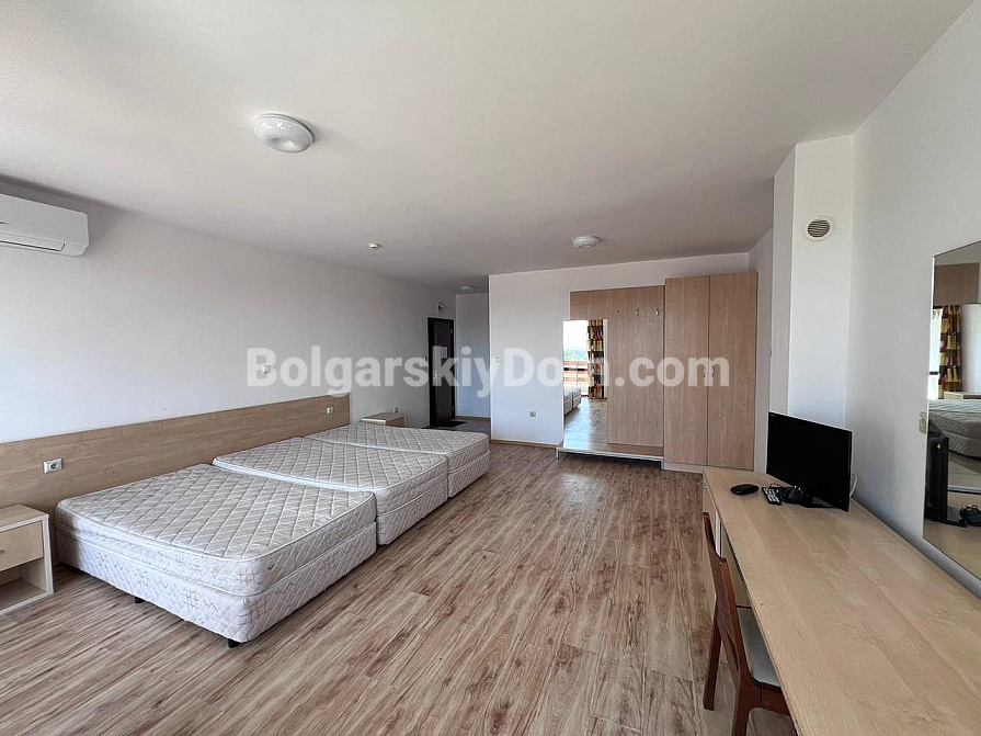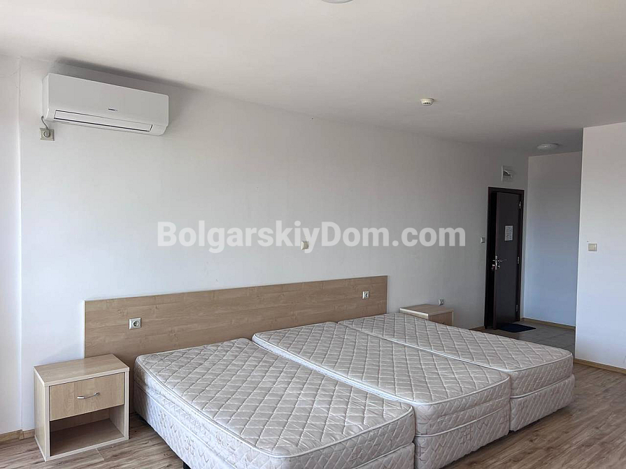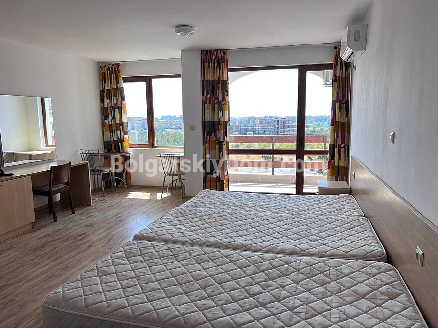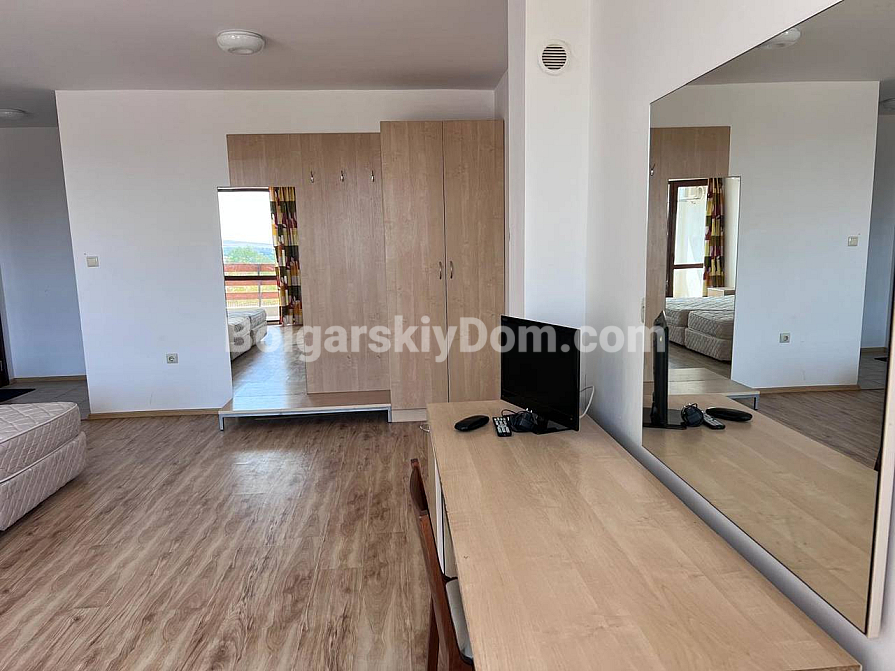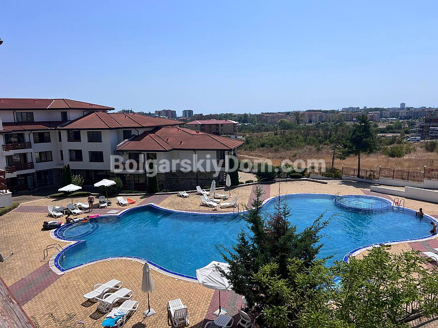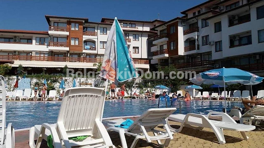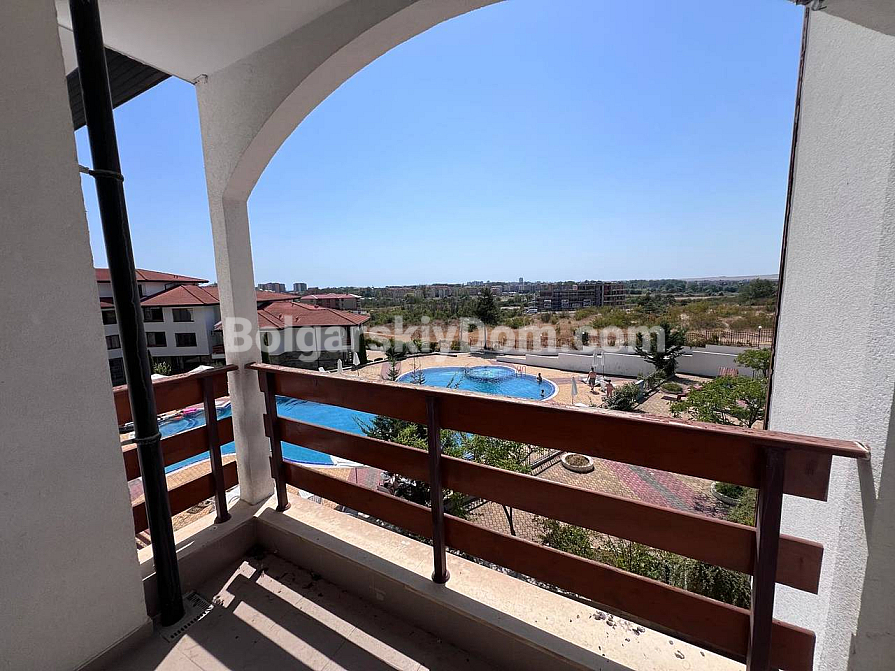 Our Bolgarskiy Dom team is pleased to present to you a spacious furnished apartment in the year-round complex Gardenia Hills. This cozy home of 60 sq.m. is located on the third floor, offering a view of the swimming pool. The layout includes an entrance hall, a spacious living room with a sleeping area, a bathroom with shower and toilet, as well as a large terrace with a lounge area that will become your favorite place to relax. The apartment is fully furnished and ready to move in. The layout allows flexible zoning. Call us!