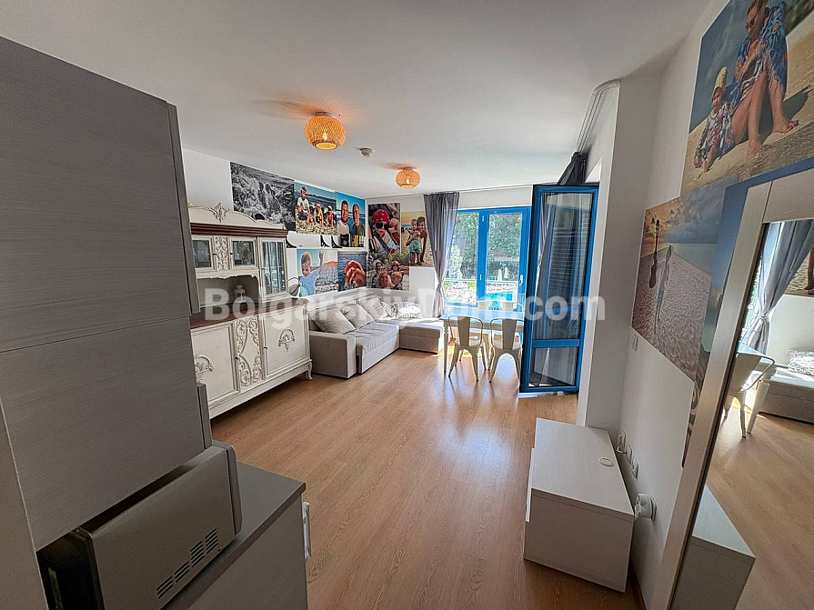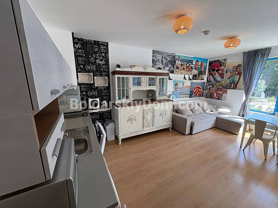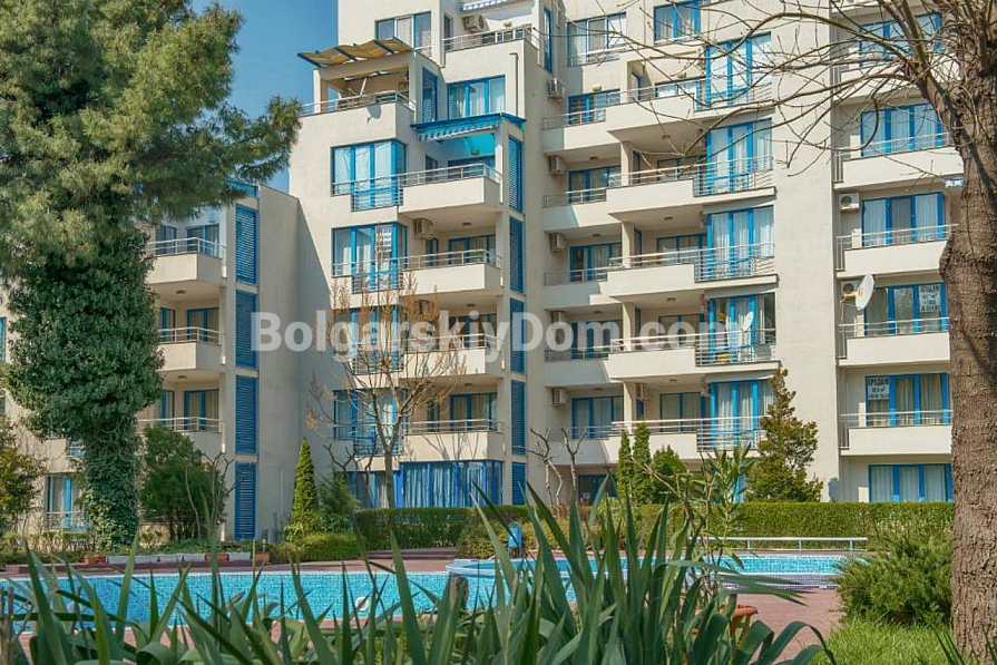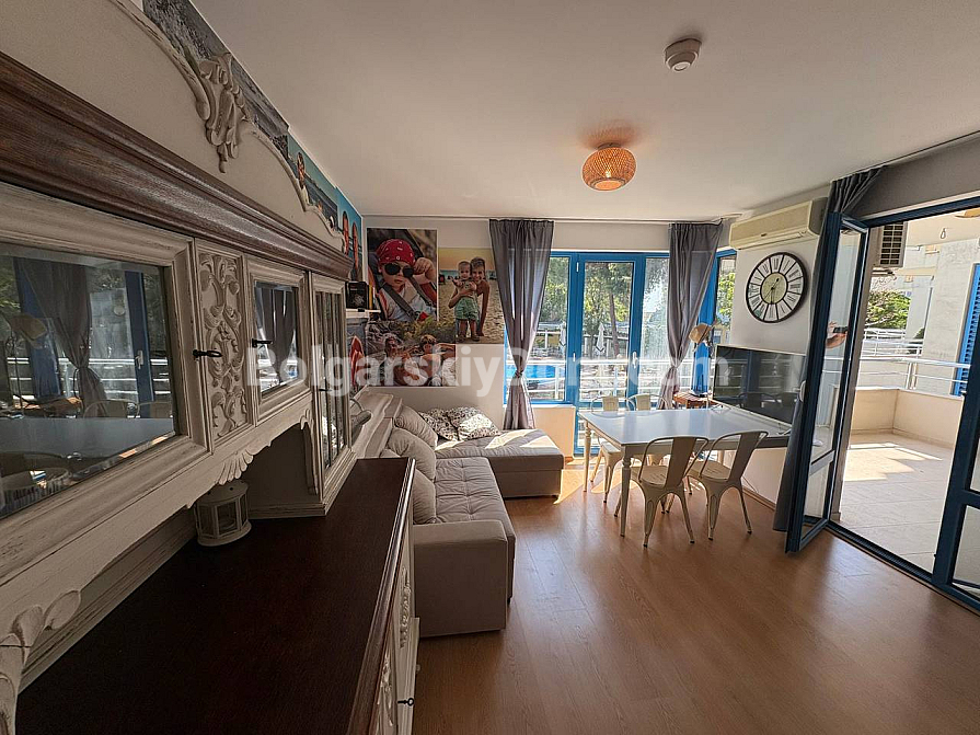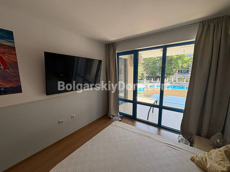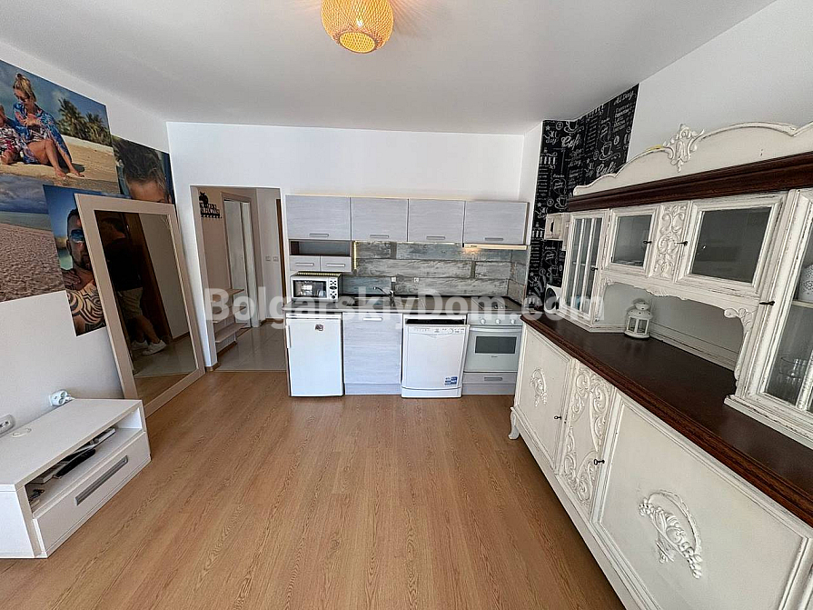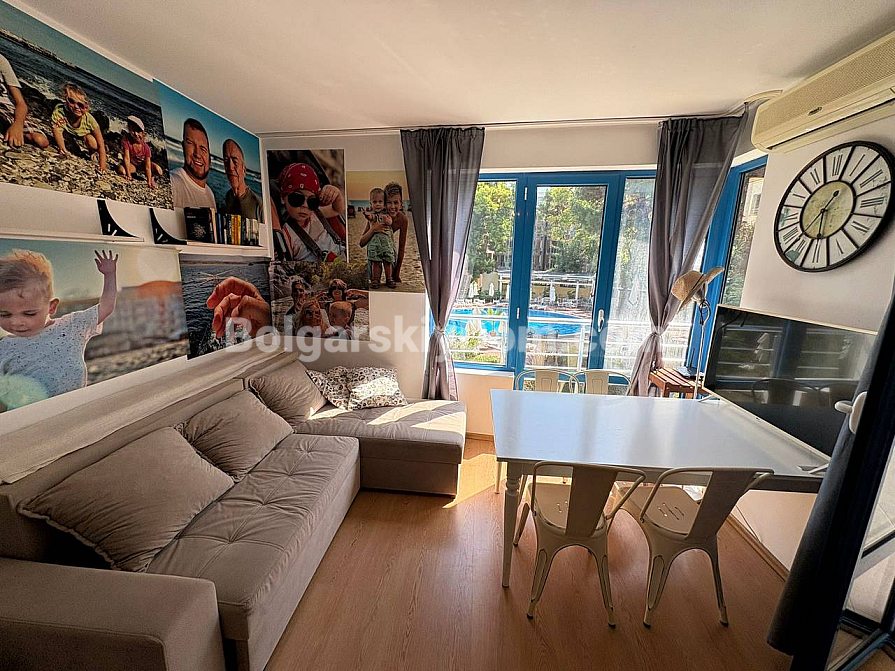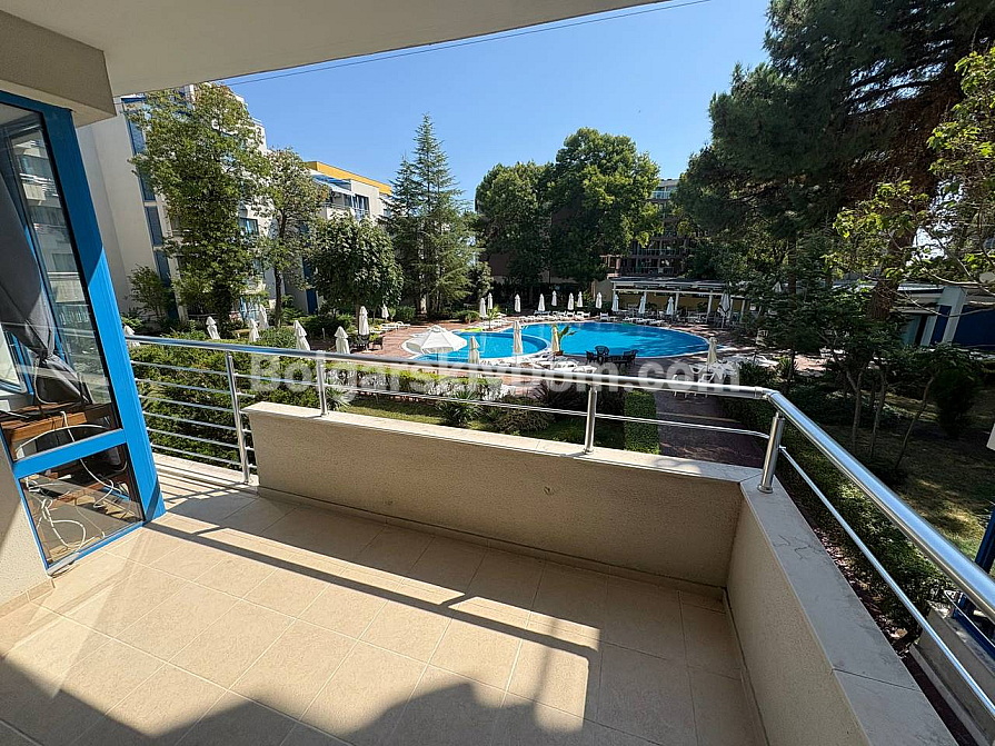The team of Bolgarskiy Dom agents is pleased to present to your attention a spacious one-bedroom apartment in the picturesque Excelsior complex, located in Sunny Beach. This cozy apartment with an area of 71 sq.m. is situated on the second floor and is sold fully furnished and ready to move in, with all the necessary furniture and household appliances included in the price, with no extra charges. You will get an entrance hall, a spacious living room with a kitchen area, a cozy bedroom with two beds, a bathroom with a bathtub and toilet, as well as a terrace overlooking the pool. A classic option for any purpose: living, vacation, or renting out. We look forward to your message!