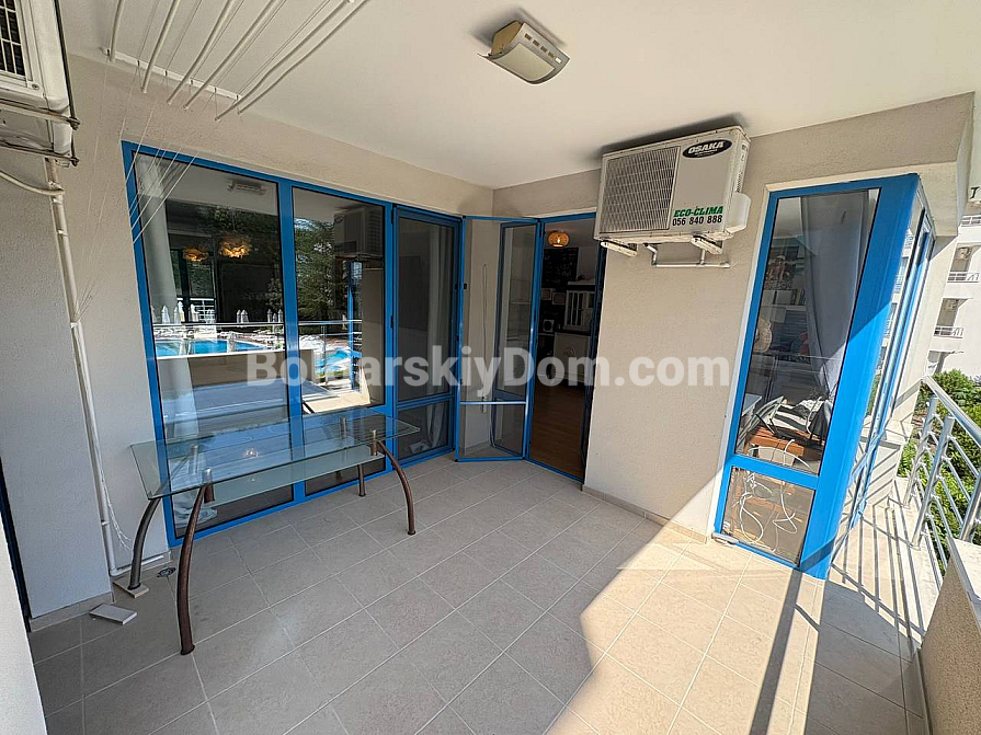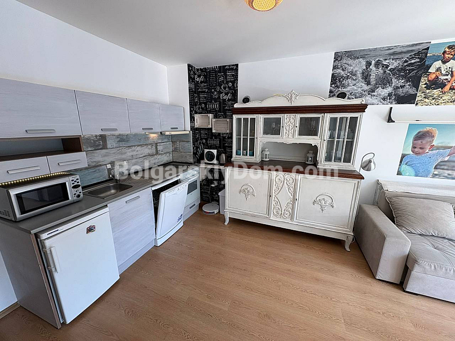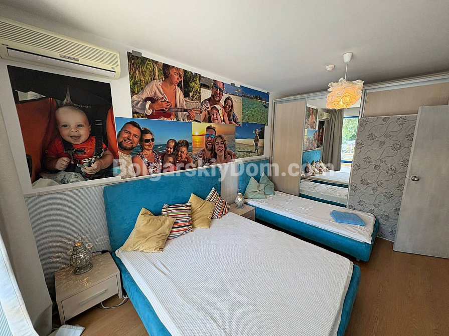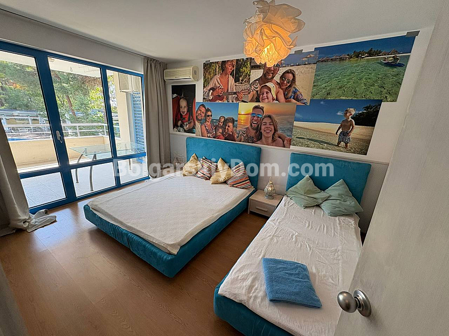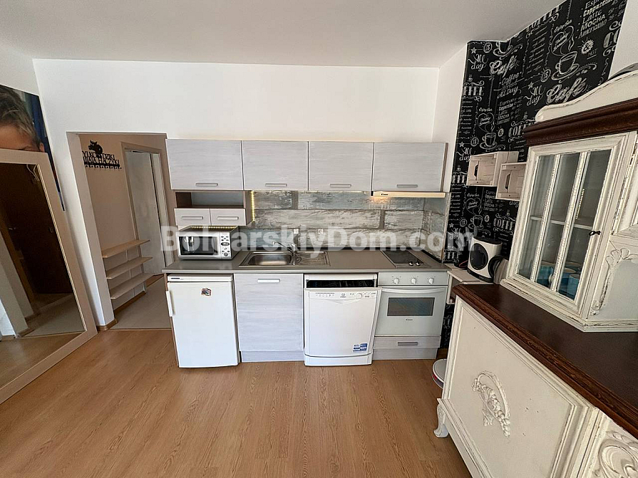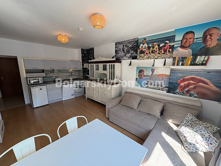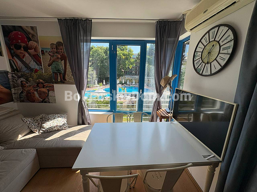 The team of Bolgarskiy Dom agents is pleased to present to your attention a spacious one-bedroom apartment in the picturesque Excelsior complex, located in Sunny Beach. This cozy apartment with an area of 71 sq.m. is situated on the second floor and is sold fully furnished and ready to move in, with all the necessary furniture and household appliances included in the price, with no extra charges. You will get an entrance hall, a spacious living room with a kitchen area, a cozy bedroom with two beds, a bathroom with a bathtub and toilet, as well as a terrace overlooking the pool. A classic option for any purpose: living, vacation, or renting out. We look forward to your message!