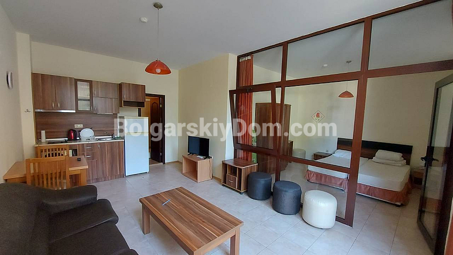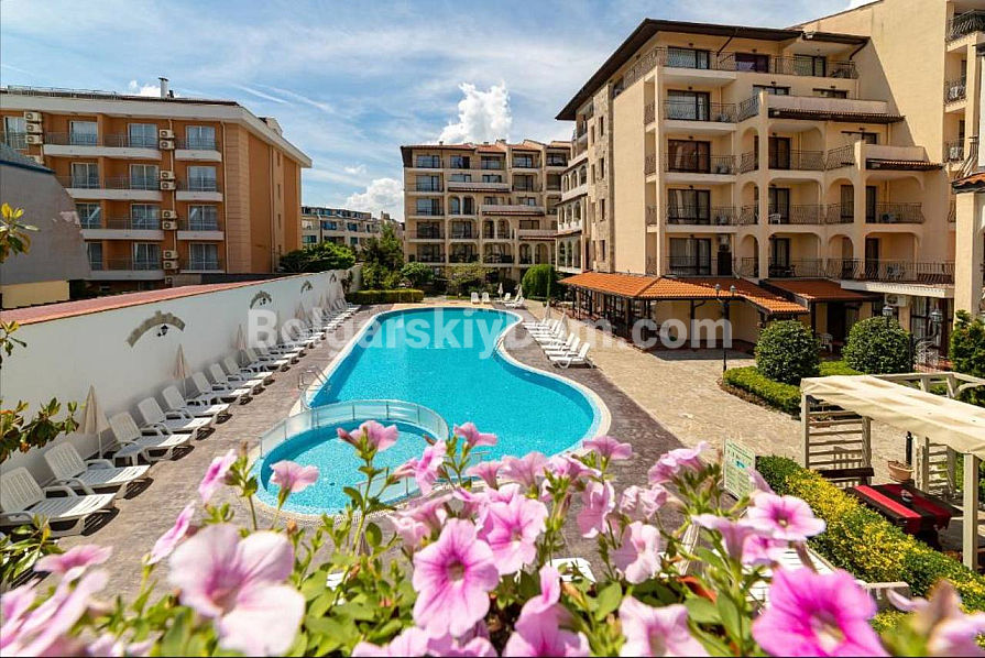 Rose Village is located in Sunny Beach, just 200 meters from the famous Cacao Beach. The complex offers two outdoor swimming pools, a gym, a barbecue area, security, and controlled access. There is a spacious green area, parking, and all amenities for year-round living: individual meters for electricity and water, household electricity, internet, and cable TV. The annual maintenance fee is only 510 euros, making this property an excellent investment with stable rental income.