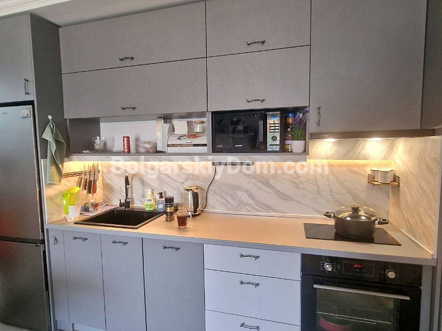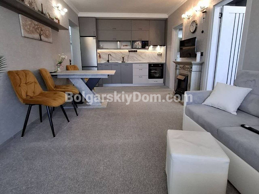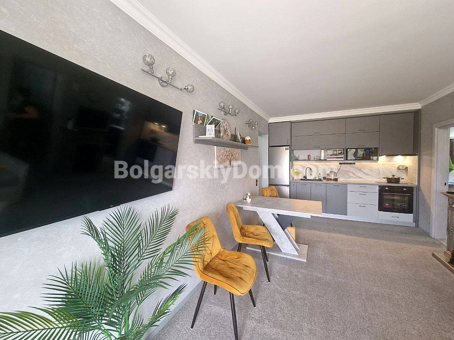 High-liquidity turnkey property from Bolgarskiy Dom! In the prestigious Vip Vision complex, located just a few steps from the coast, a one-bedroom apartment is offered for sale — an excellent choice for comfortable living or investment. This apartment, with a total area of 67 sq.m., is situated on the third floor and designed in a modern style, with a focus on functionality and comfort. All furniture and appliances, including a refrigerator, dishwasher, and washing machine, are brand new, premium-class, and under warranty! The layout includes a corridor, spacious living room, kitchen-dining area, bedroom, and a modern bathroom. The interior boasts a high-quality, bright finish in a “Pinterest” style, and there is a large terrace with an awning overlooking the green surroundings. Call us — only we have such a great price for this apartment!