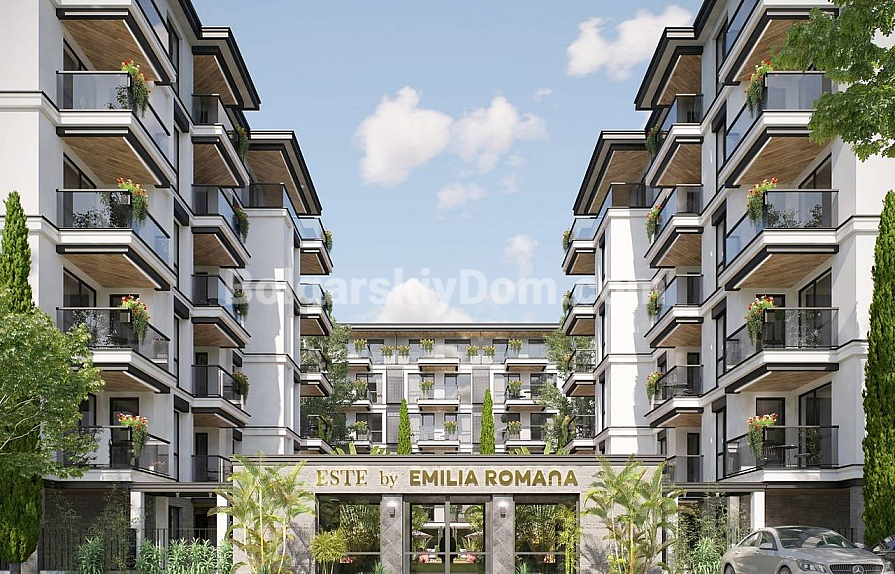 The Emilia Romana Este complex is part of a large-scale residential project, located in a quiet and green area of Sunny Beach, just 1 km from the sea. Its vast territory will feature a year-round fitness center with a spa area, several themed swimming pools, restaurants, landscaped gardens, and children’s playgrounds. 24-hour security, video surveillance, and underground parking are standard yet important aspects for investors. The annual maintenance fee is 16 euros per square meter.