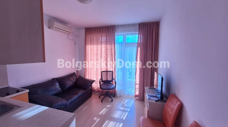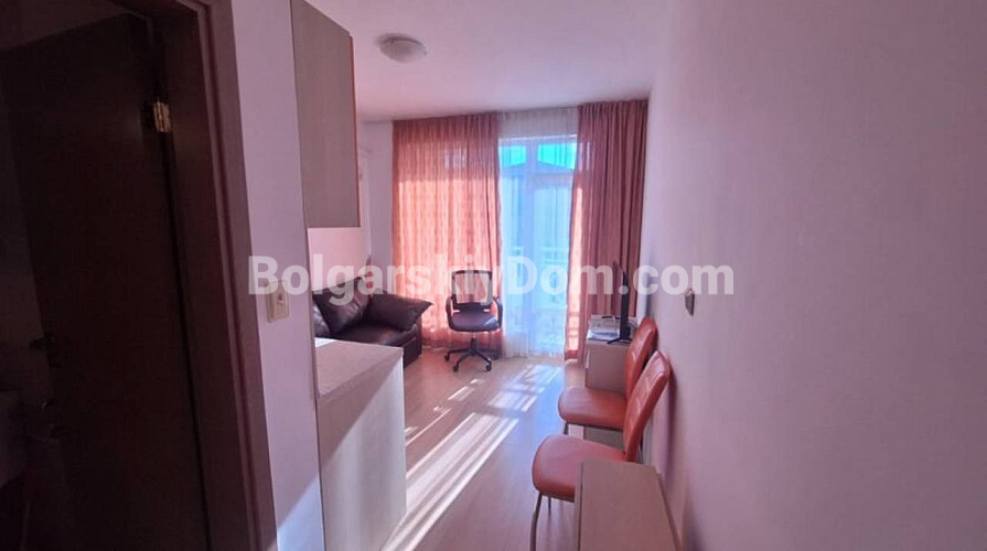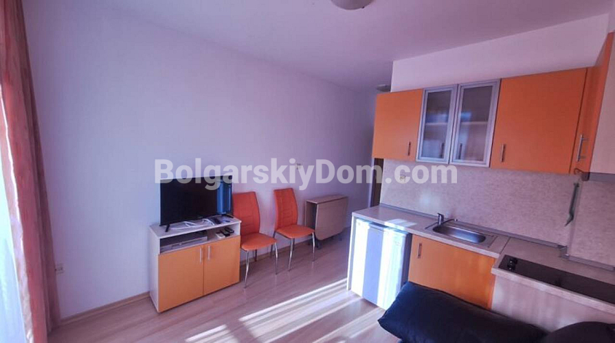A new property has appeared in our catalog, which will be an excellent option for a first investment, as it is offered at an affordable price! We present for sale a cozy studio apartment in the Sunny Day 6 complex. This 25 sq.m. home is located on the fourth and top floor and is sold fully furnished and equipped with everything necessary. From the west-facing windows and the spacious terrace, there is a peaceful view of the complex grounds and the picturesque mountains. Great price, call us!