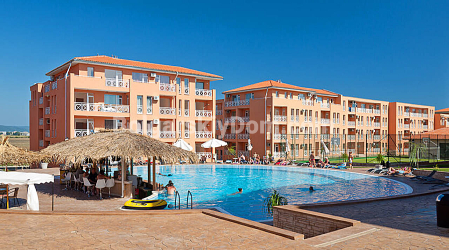 The Sunny Day 6 complex is a real resort town located just 3 km from Sunny Beach. Here you will find everything for a full vacation and active lifestyle: a fitness center, restaurant, supermarket, four outdoor pools, a tennis court, football, basketball, and other sports grounds. For your peace of mind, 24-hour security is provided. The complex has convenient transport connections and a cycling path linking it to the beach and city center. The annual maintenance fee is 580 EUR.