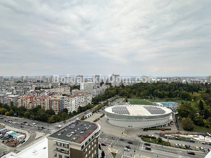 If you want to have your own one-bedroom apartment in Burgas with a beautiful view in a good area, this offer is just for you! Spacious apartment with an area of 76 square meters in the modern complex Central Park. The apartment is located on the eighteenth (penultimate) floor, from where a breathtaking panorama opens: a beautiful view of the lake, mountains, the city shining with lights and even partially the sea. The apartment is sold in a rough finish — you can design the interior completely for yourself. The correct shapes of the rooms for a comfortable layout. Spacious entrance hall. Smart home system — comfort and safety control. Plus, a parking space is included in the price.