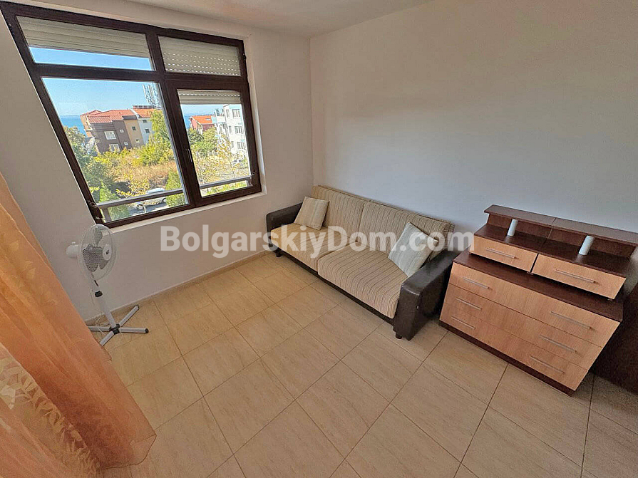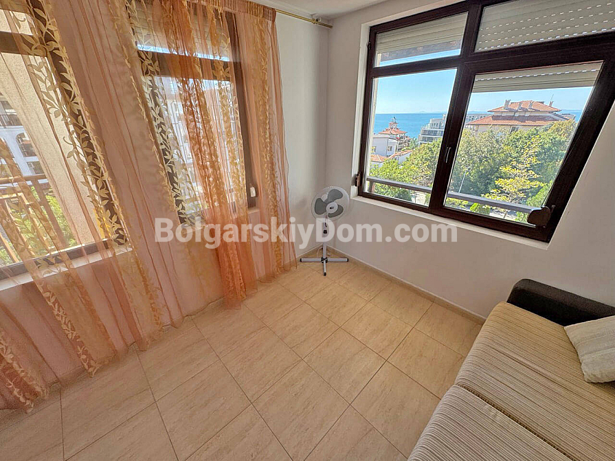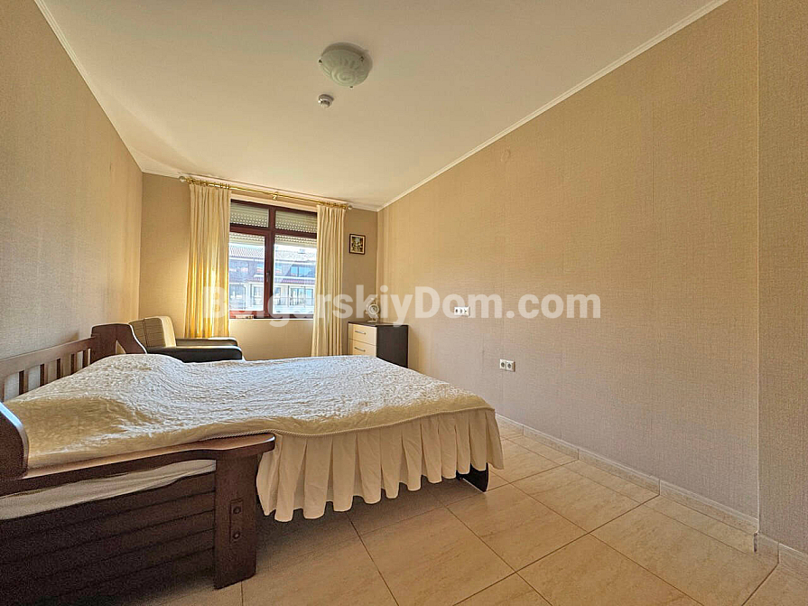Saint Vlas, new listing! Our catalog now features a property that combines everything one could dream of: fresh mountain air and endless sea views right from your windows. In the Etara 3 complex in Saint Vlas, a spacious one-bedroom apartment with a total area of 82 sq.m. is offered for sale. It is located on the fourth floor of a building with an elevator and has the following layout: entrance hall, a large living room with kitchen and dining areas, two bedrooms, and two bathrooms with shower cabins. A special highlight is the large balcony with a relaxation area, offering breathtaking views of the sea and the mountains.