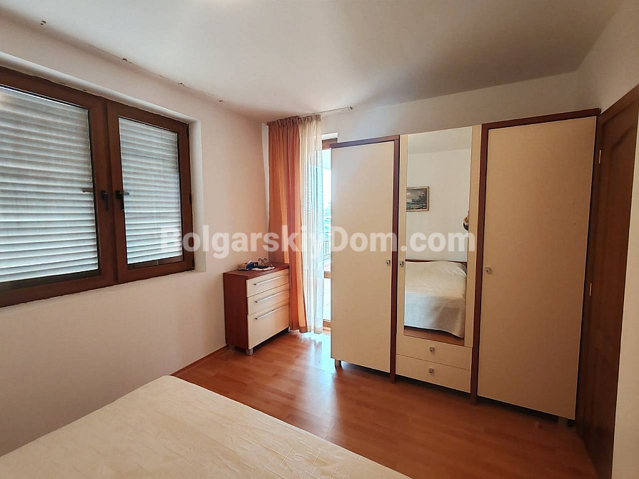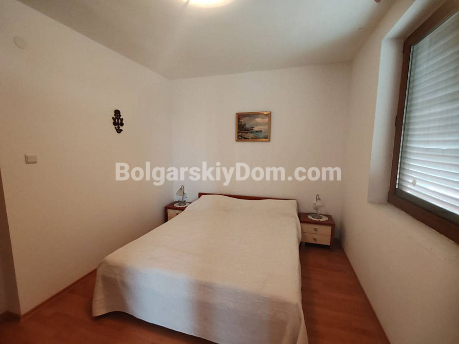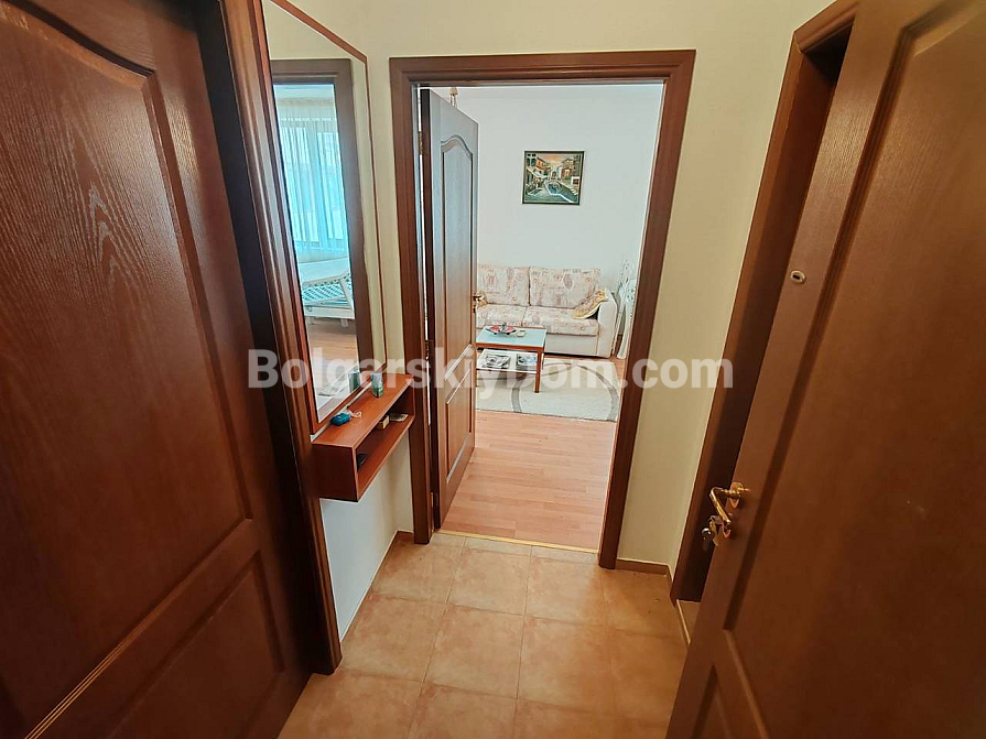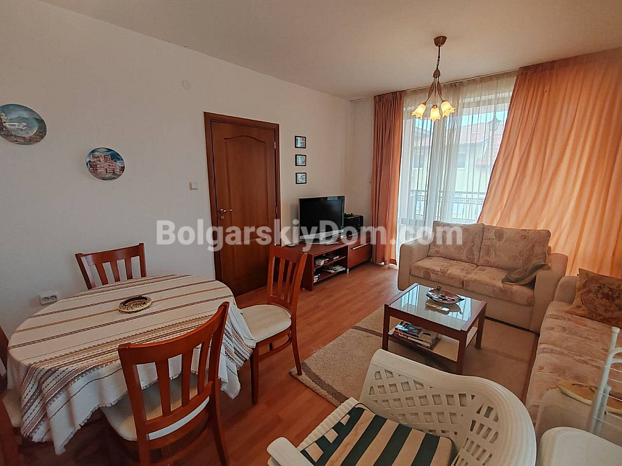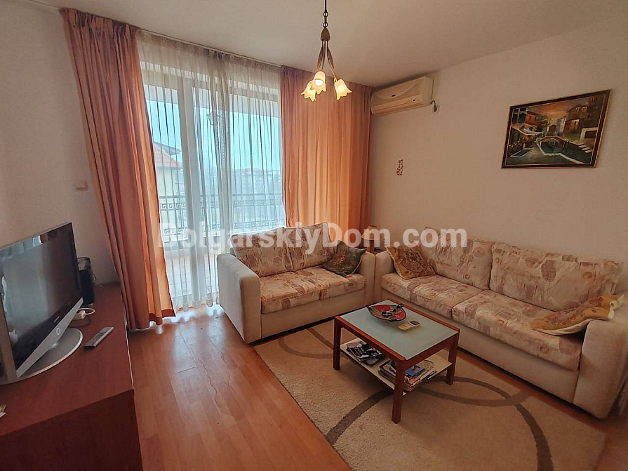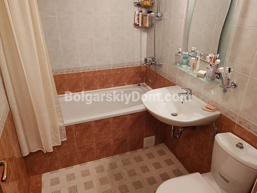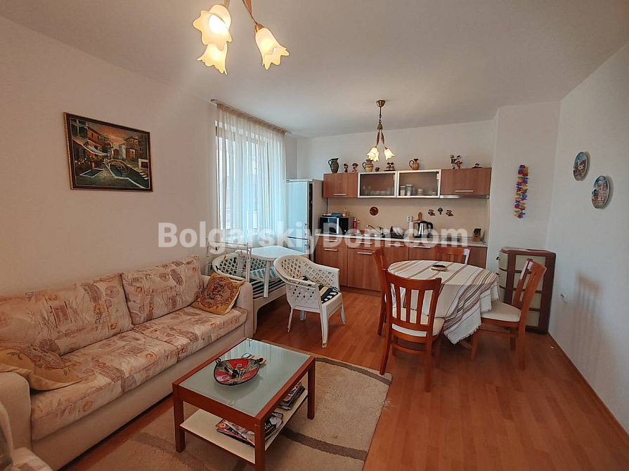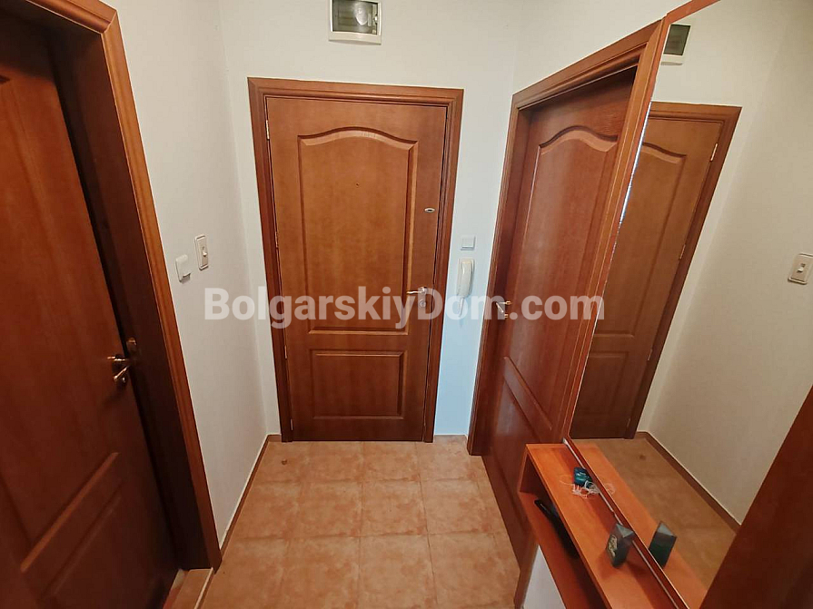 New offer in the green area of a top resort, just a couple of minutes from the Black Sea! The team of the real estate agency Bolgarskiy Dom presents to your attention a cozy and spacious apartment, which will become an ideal base for holidays or permanent residence in the prestigious part of Sunny Beach. In the Efir complex, a one-bedroom apartment with a total area of 59 sq.m. is for sale, located on the fifth floor (not the top one). The layout includes a separate bedroom, a living room with an already equipped kitchen area, a bathroom, and a balcony. Important: there is an entrance hall separating the “utility” zone, and the bathroom is equipped with a bathtub. The interior is classic, in good functional condition.