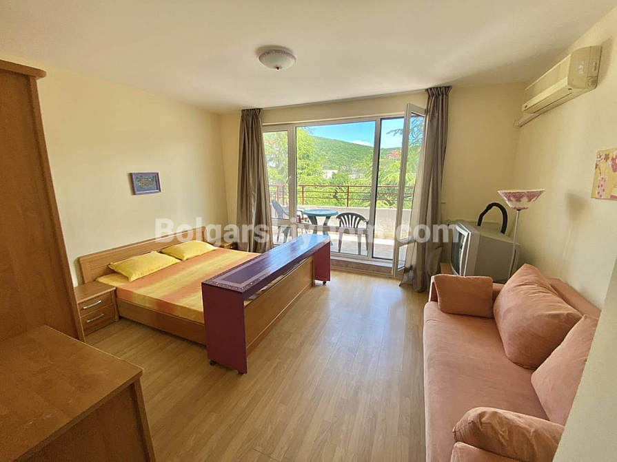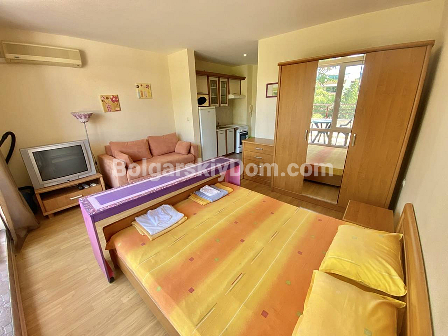 Bolgarskiy Dom has found the perfect property for you, where you don’t need to choose between the mountains and the sea. This is a studio in the Privilege Fort Beach complex – right on the first line in Elenite, in a romantic place called "Robinson"! The apartment has a total area of 36 sq.m., is located on the fourth floor, and is fully ready: furniture, appliances, air conditioning – no additional investment is required to move in. The layout is super functional: entrance hall, living room with kitchenette, combined bathroom, and most importantly – a large terrace with a calming view of the green hills. Its eastern orientation will gift you with perfect sunrises. We are waiting for your call!