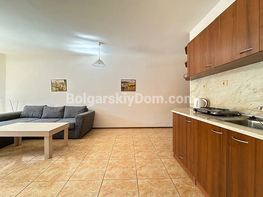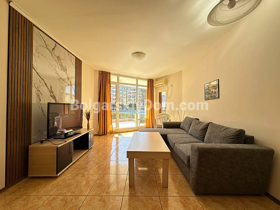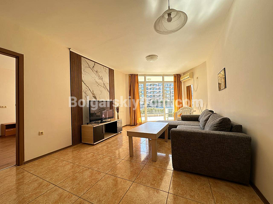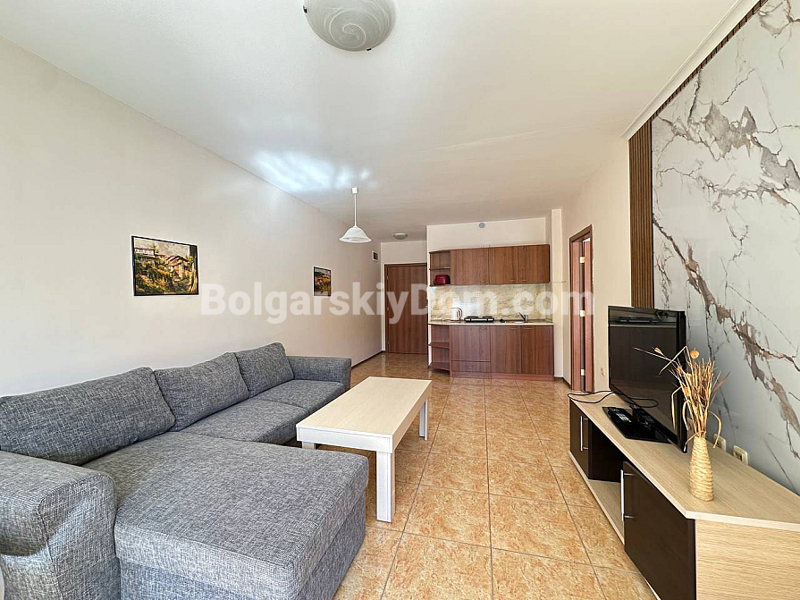 Ready for a great new offer with a truly pleasant budget? The team of Bolgarskiy Dom has found the perfect “key” to life on the first line for you! We present a spacious one-bedroom apartment in the Midia Grand Resort complex, located just 50 meters from the sea in picturesque Aheloy. This is 80 sq.m. of pure comfort, fully ready to move in, situated on the first floor of a six-story building. Inside, you will find a truly comfortable and bright atmosphere: a practical interior in light tones is complemented by marble-effect accents. The spacious living room is already furnished with a soft corner sofa and a TV, while the open-plan kitchen is equipped with a modern set and all necessary appliances. This is exactly the kind of property format that is ideal both for personal living and for profitable rental.