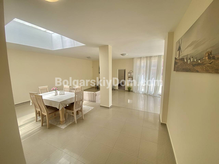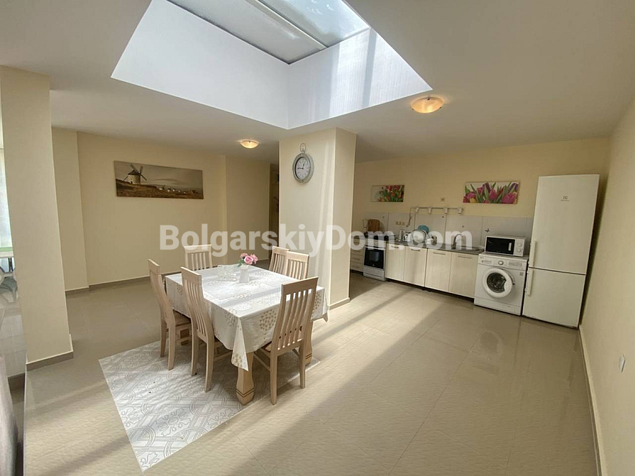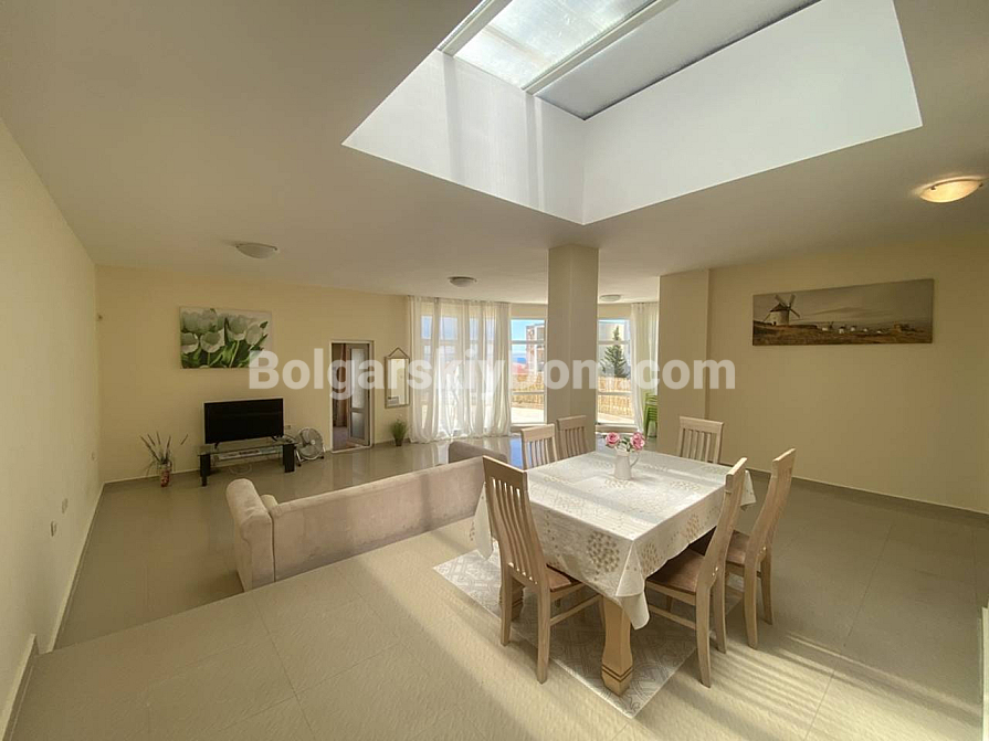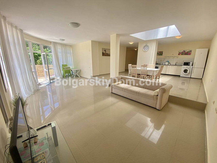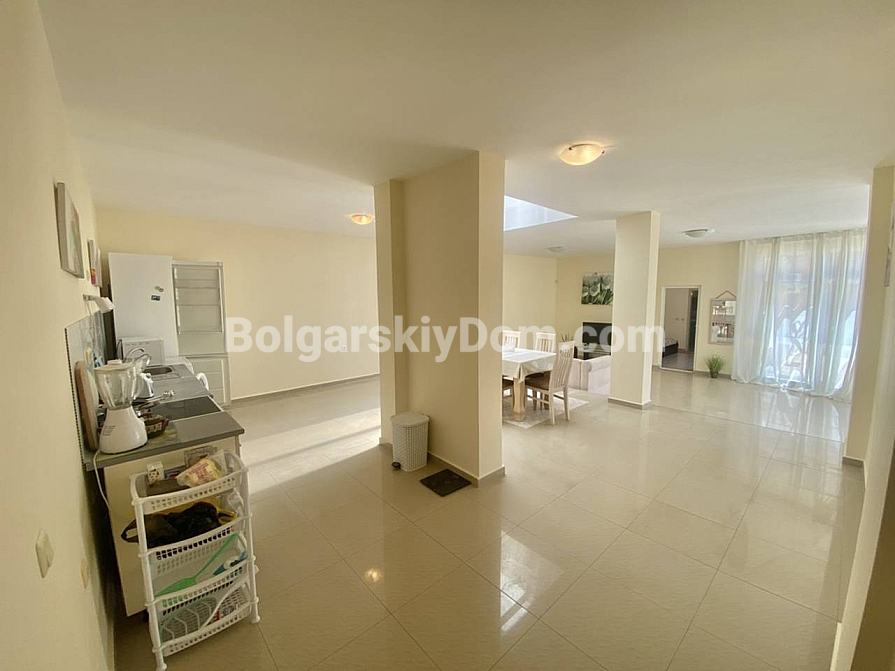 A top offer that is already ready for viewings and purchase! This is truly a “must-see” property: a unique and spacious one-bedroom apartment with an area of 107.8 sq.m. in the VIP district of Sveti Vlas. The main bonus: a sea view and practically no maintenance fee. The apartment is located on the ground floor (due to the specifics of the terrain). Inside, full comfort awaits you: a huge living room with kitchen and dining area and a skylight window – it both sounds and looks amazing! The apartment can easily be reconfigured into a two-bedroom. It already comes with furniture, appliances, air conditioning, and from the large terrace you can enjoy a panoramic sea view. An additional advantage: on the same floor there is a storage room of 10 sq.m., which is priceless for convenient long-term living.