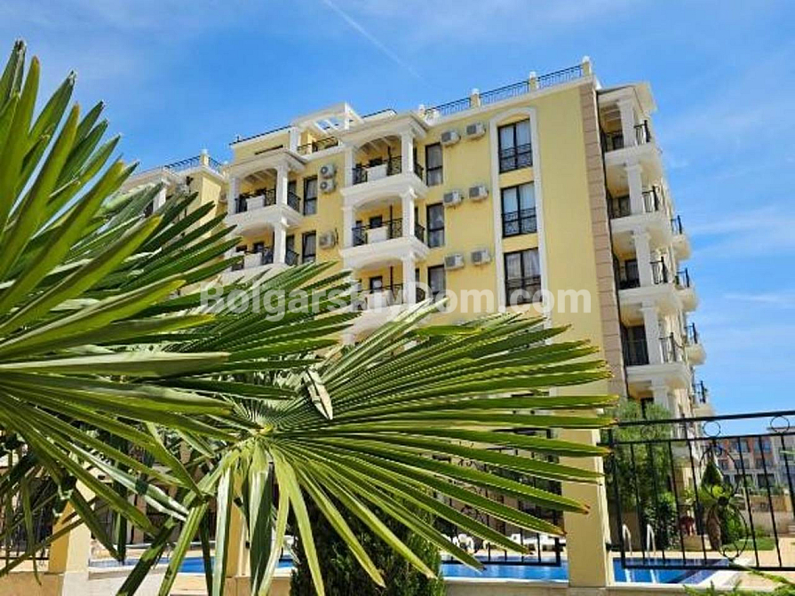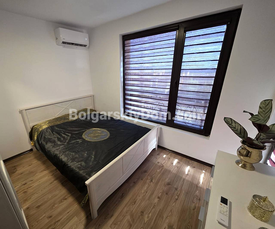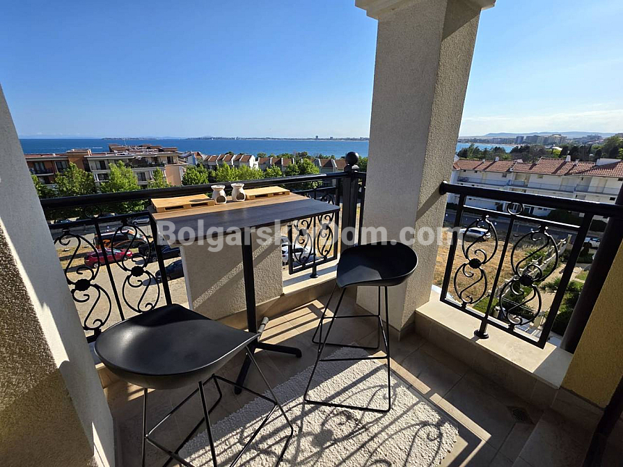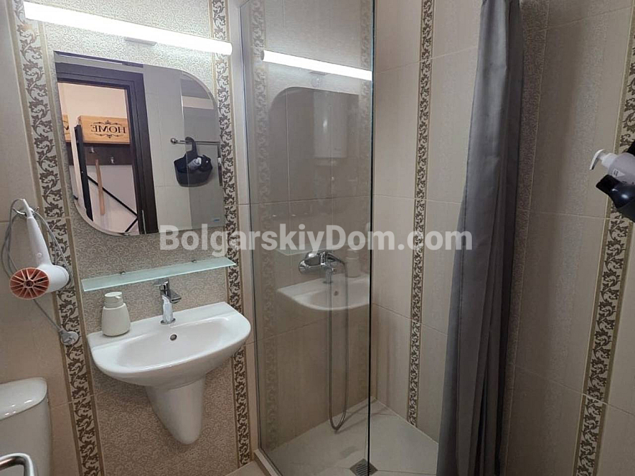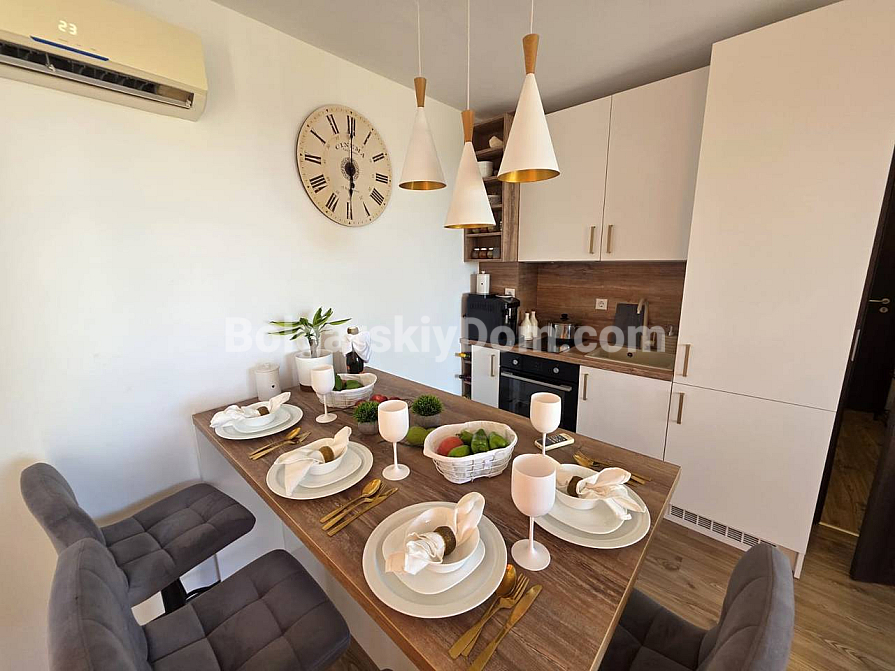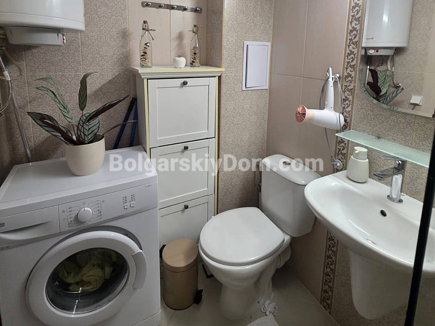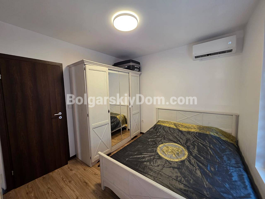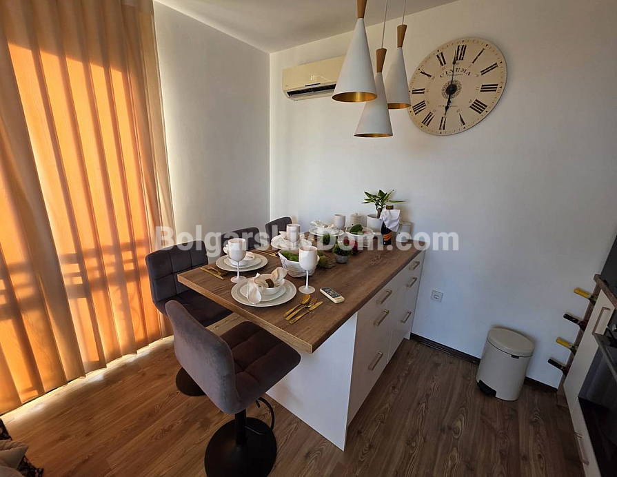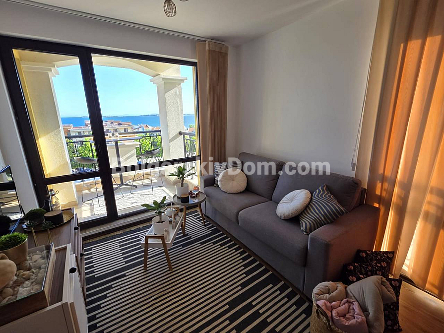 Bolgarskiy Dom company presents a property that needs no long introduction: a ready-to-move-in apartment in prestigious Saint Vlas with a guaranteed sea view! We present a bright apartment with an area of 54 sq.m., located on the fifth floor of the modern residential complex Morski Bryag. Everything here is already thought out, so you won’t need to invest additionally in furnishing: the spacious living room features panoramic windows, a stylish sofa, and access to the terrace where you can enjoy breakfast with a sea view. The open-plan kitchen is equipped with a modern set, built-in appliances, and wooden accents. The apartment has air conditioners in both rooms, and in the bedroom you will find a large double bed and a spacious wardrobe with mirrors.
