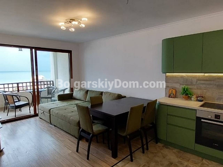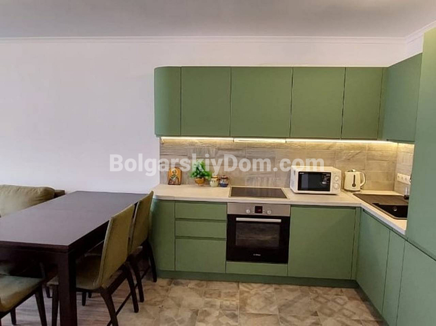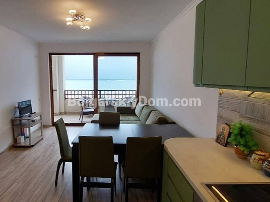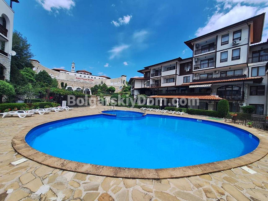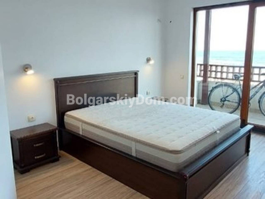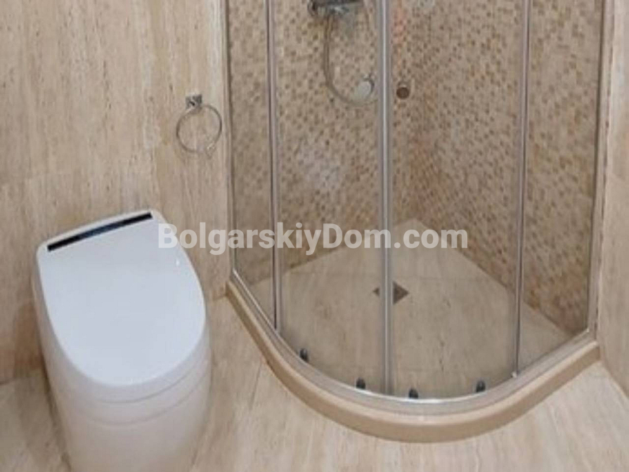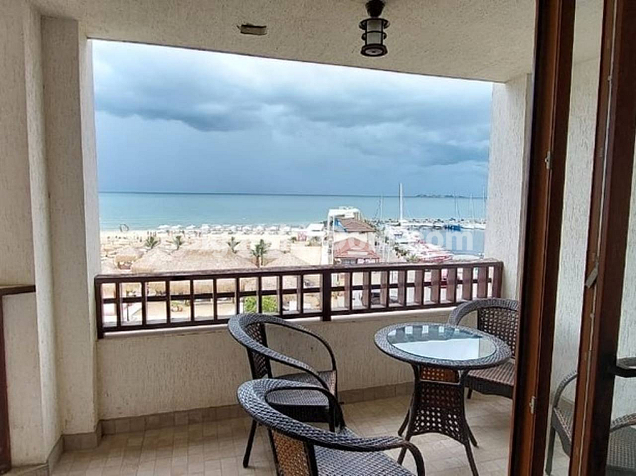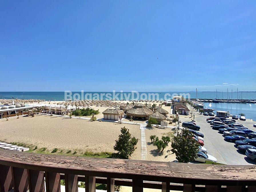 New on the luxury market, an absolutely unique format! Bolgarskiy Dom presents a property that is truly a rare find! A two-bedroom apartment is for sale in Arena 1 complex — this is the very FIRST LINE in the VIP area of Saint Vlas, right by the yacht marina “Marina Dinevi”. The apartment has a total area of 89 sq.m., located on the 4th floor and is fully ready to move in: furniture, household appliances, and quality renovation are included. The well-thought-out layout features a corridor, a spacious living room with a kitchen area, two bedrooms, two bathrooms (with underfloor heating!), and a separate laundry-dressing room — an incredible advantage! The highlight: a huge terrace with a simply magnificent panoramic view of the sea, the beach, and the yacht port.