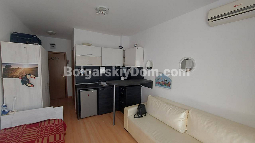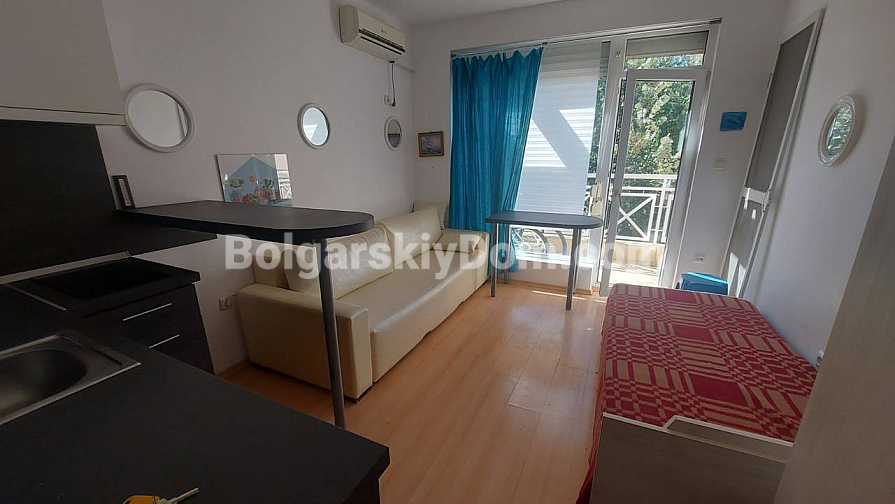 Discover a new offer that is essentially a perfect investment! A bright studio of just 28 sq.m. is for sale in one of the largest complexes of the resort – Sunny Day 6. The apartment is located on the fourth floor, fully ready, and ideal for rental or for a short but comfortable holiday. Inside you will find a well-designed space: a living area with a sleeping place and a sofa, a compact kitchenette with a bar counter, refrigerator, and storage space. Thanks to the large windows, the studio is always filled with natural light, and from the spacious balcony, you can enjoy a pleasant view of the courtyard and greenery. An air conditioner is installed, ensuring comfort all year round.