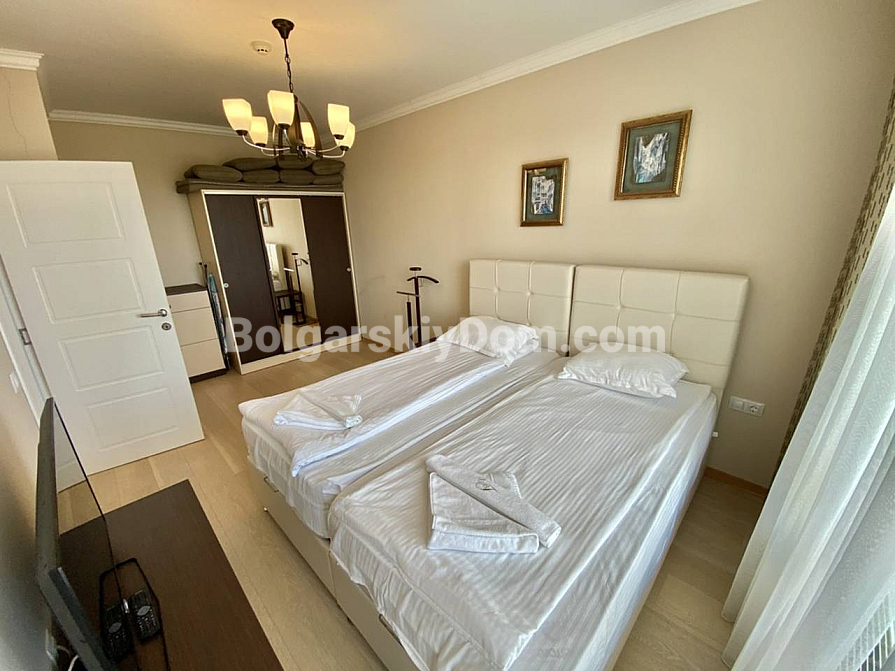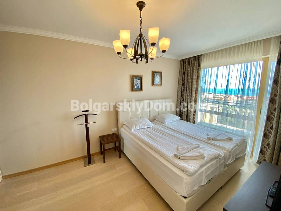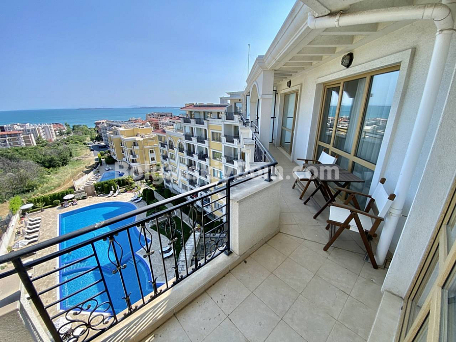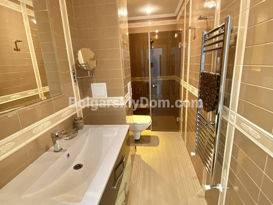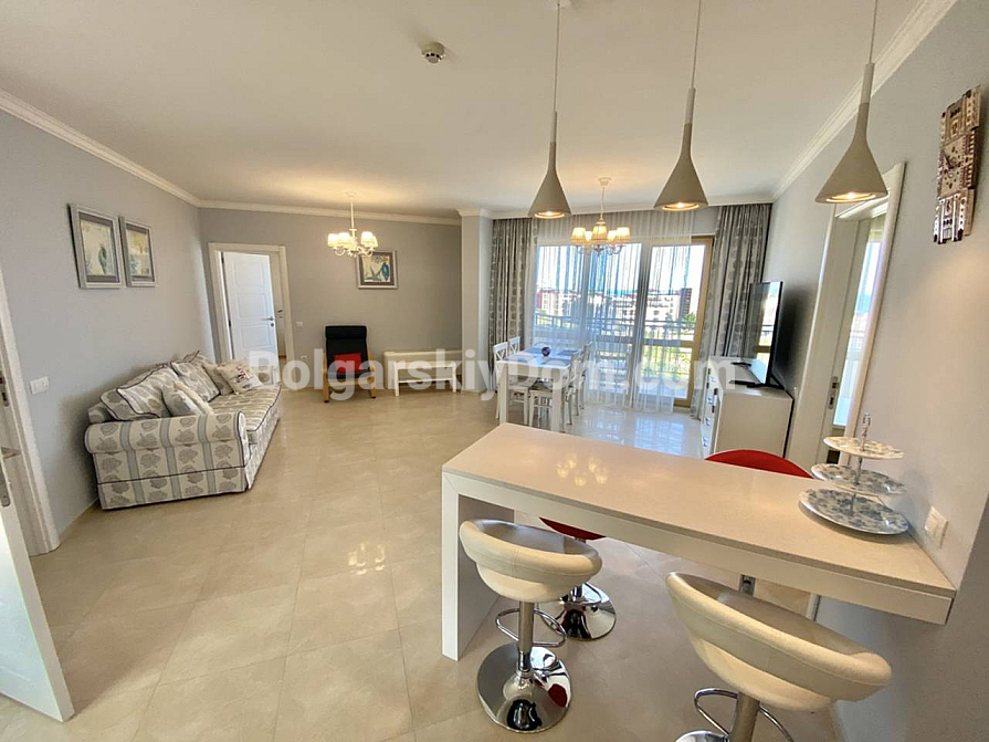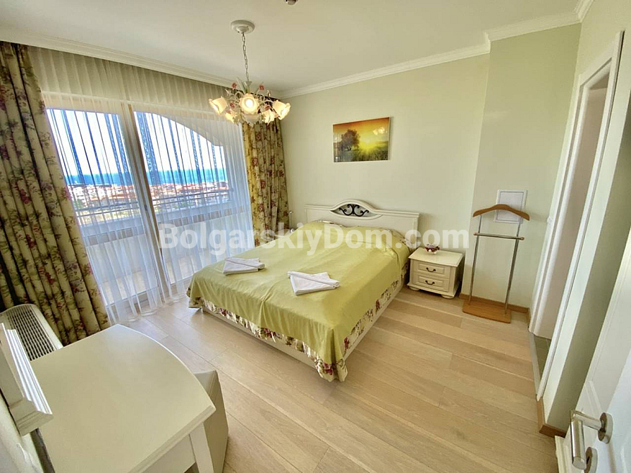 An exclusive property has appeared in the catalog of Bolgarskiy Dom, impressive with its scale and premium location. We offer a two-bedroom apartment in the elite Villa Florence complex in Saint Vlas with a stunning sea view! The apartment is located on the sixth floor, with a total area of 158.34 sq.m. (including an open terrace of 40.5 sq.m.). The layout includes an entrance hall, a living room with a kitchen area, two bedrooms, and two combined bathrooms with Italian ceramics. Thanks to its southern exposure, the apartment is always filled with light. From the terrace, in addition to the sea, there is a picturesque view of the green hills of the Stara Planina mountain. The apartment is sold with quality furniture and household appliances and is equipped with high-speed internet.