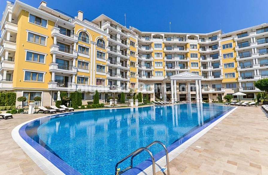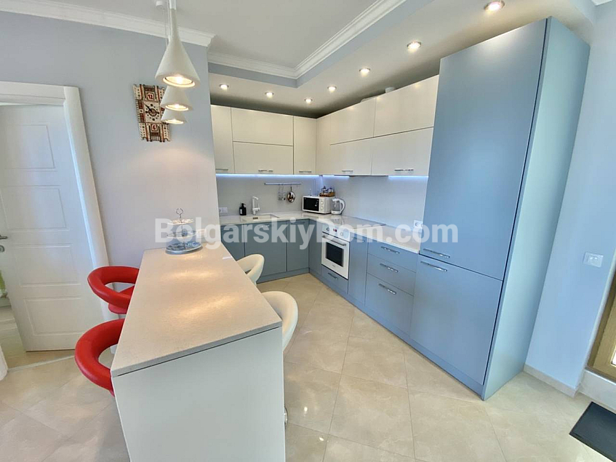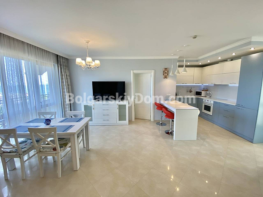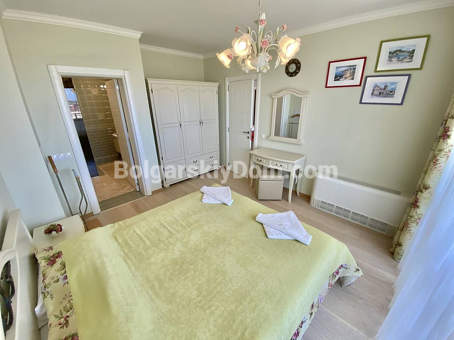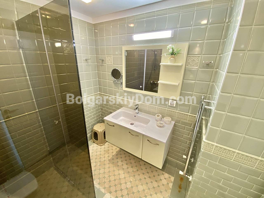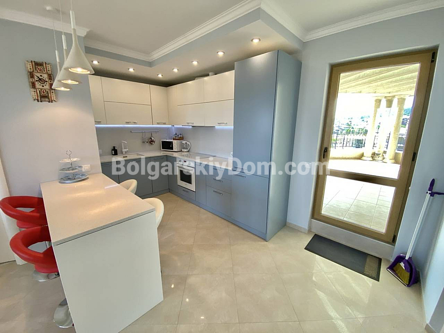 An exclusive property has appeared in the catalog of Bolgarskiy Dom, impressive with its scale and premium location. We offer a two-bedroom apartment in the elite Villa Florence complex in Saint Vlas with a stunning sea view! The apartment is located on the sixth floor, with a total area of 158.34 sq.m. (including an open terrace of 40.5 sq.m.). The layout includes an entrance hall, a living room with a kitchen area, two bedrooms, and two combined bathrooms with Italian ceramics. Thanks to its southern exposure, the apartment is always filled with light. From the terrace, in addition to the sea, there is a picturesque view of the green hills of the Stara Planina mountain. The apartment is sold with quality furniture and household appliances and is equipped with high-speed internet.
