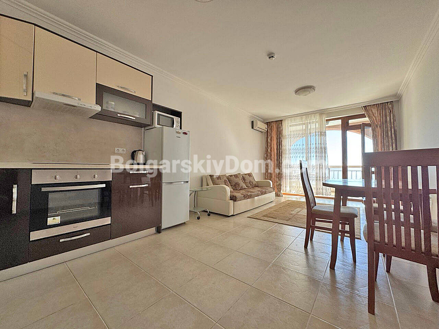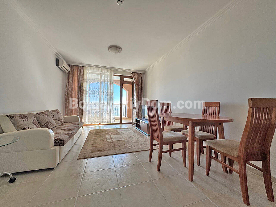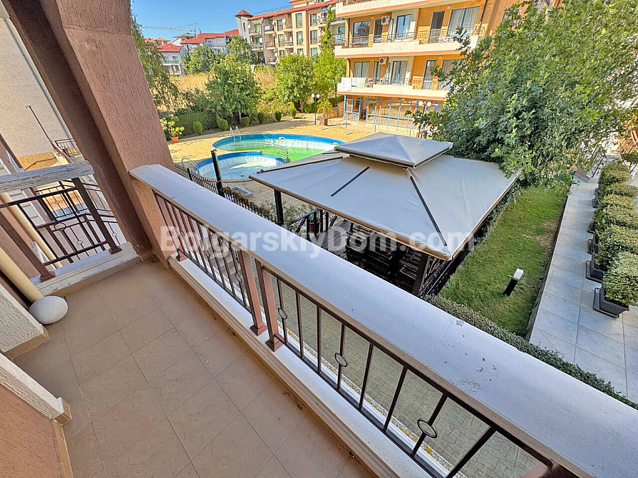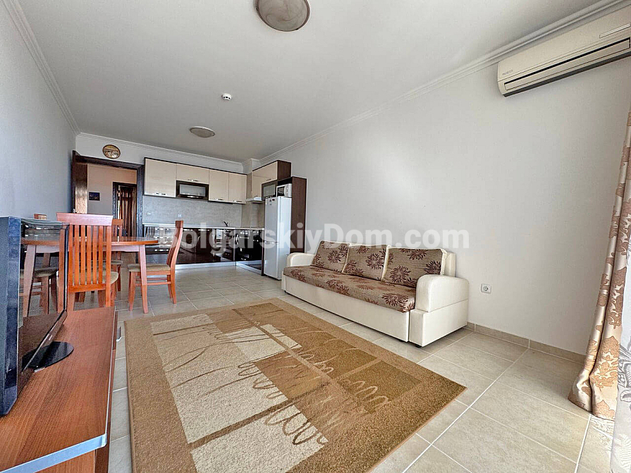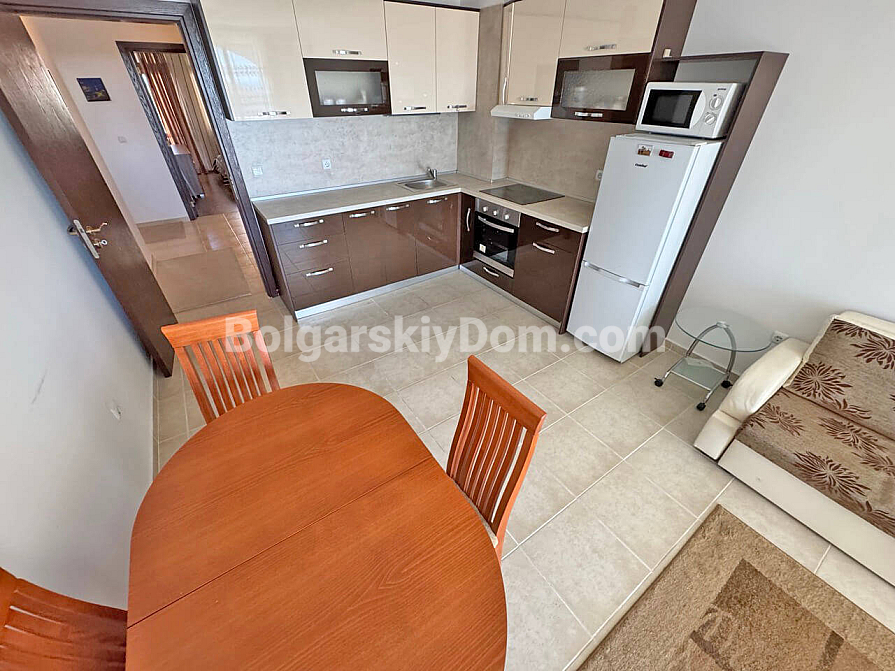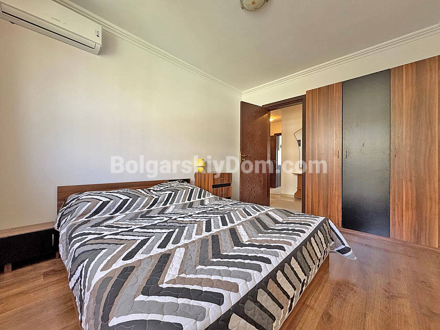 A new listing that will definitely make it to the top of our current catalog! Bolgarskiy Dom real estate agency presents an apartment of 86 sq.m., located on the second floor of the Caprice complex. The layout is perfectly designed for a large family: an entrance hall, two separate bedrooms, a living room combined with a kitchen, and most importantly — two full bathrooms. The property is fully furnished, equipped with high-quality household appliances, and air conditioners are installed. The cherry on top: two balconies, one of which offers a daily panorama of the sea and the pool. We’re waiting for your call!