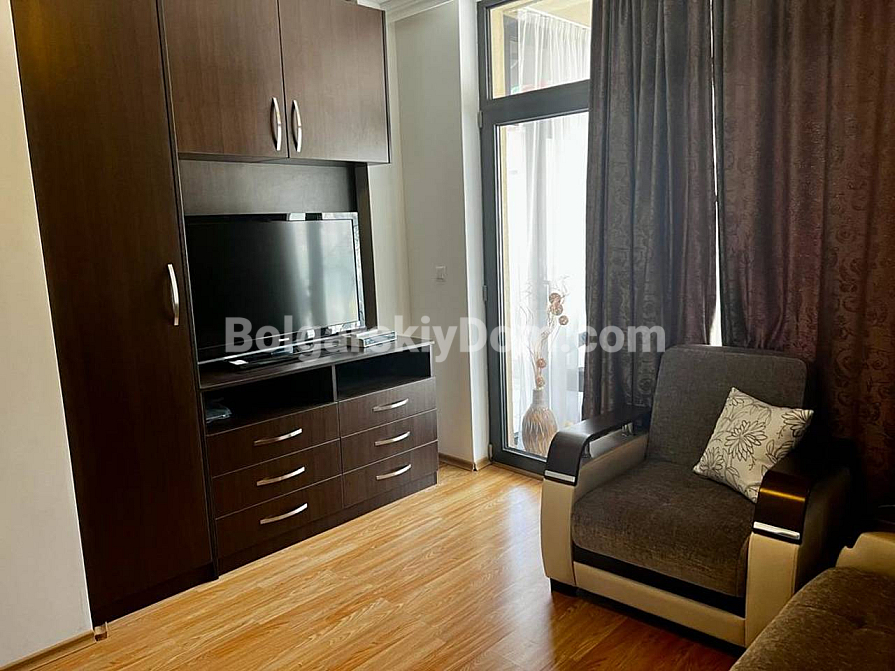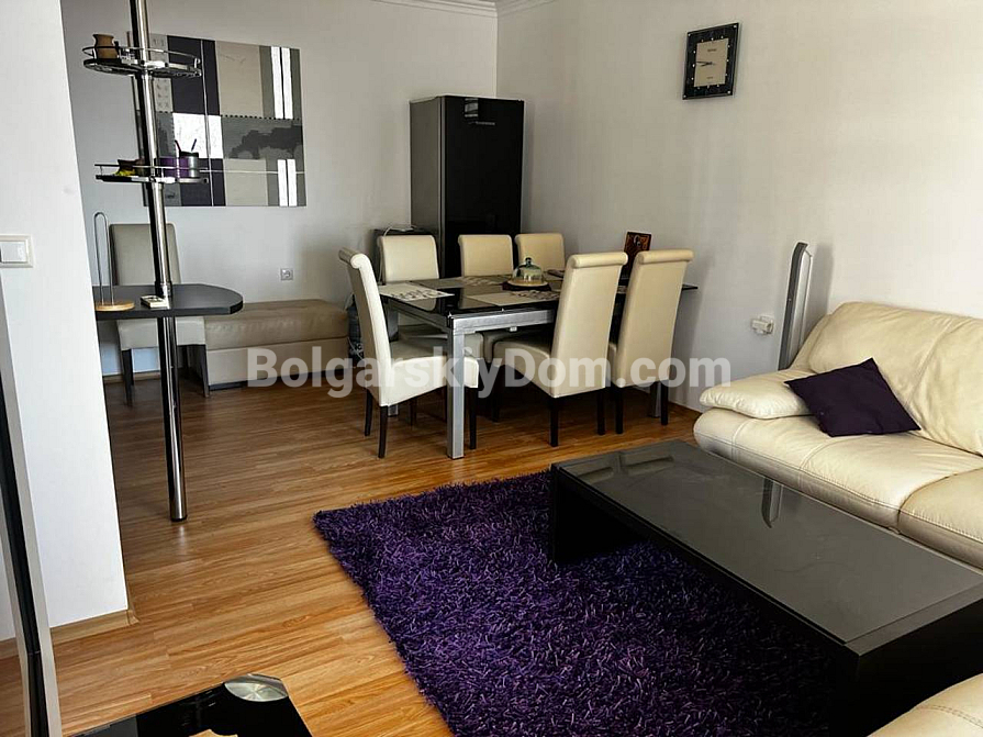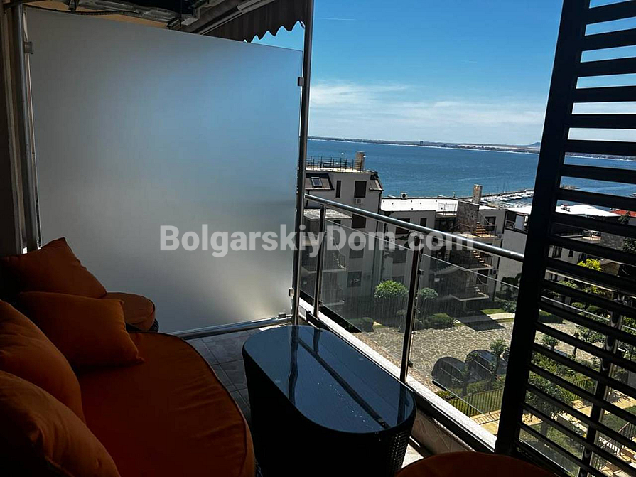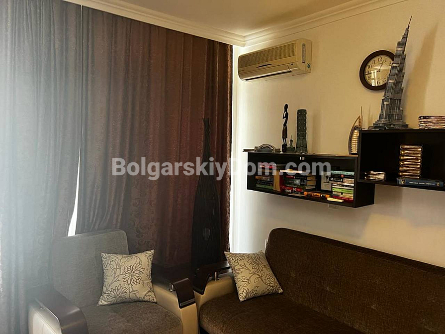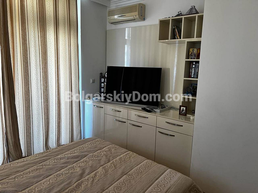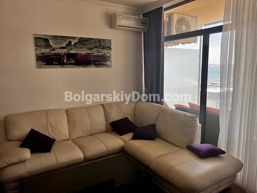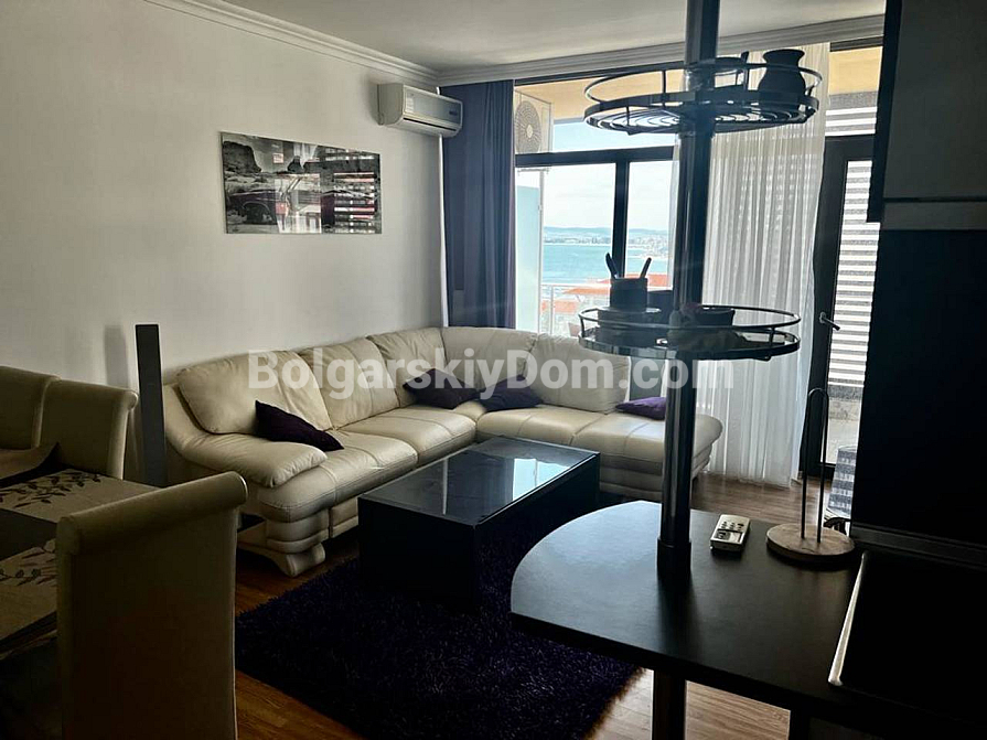 Welcome to a luxurious two-bedroom apartment on the first line in Saint Vlas! Bolgarskiy Dom presents a spacious property in the Dolce Vita 2 complex with a net area of 116 sq.m., located on the fourth floor. The layout is ideal for comfortable living: two bedrooms (one currently arranged as a cozy home office), a bathroom with a shower, a separate guest toilet, and a large living room combined with a kitchen. The main highlight — from both the living room and the terrace, you can enjoy a stunning, breathtaking sea view! The apartment is fully furnished, equipped with appliances, and ready to offer you comfort all year round. An additional and very important bonus: on the same floor, there is a private storage room of 17 sq.m.