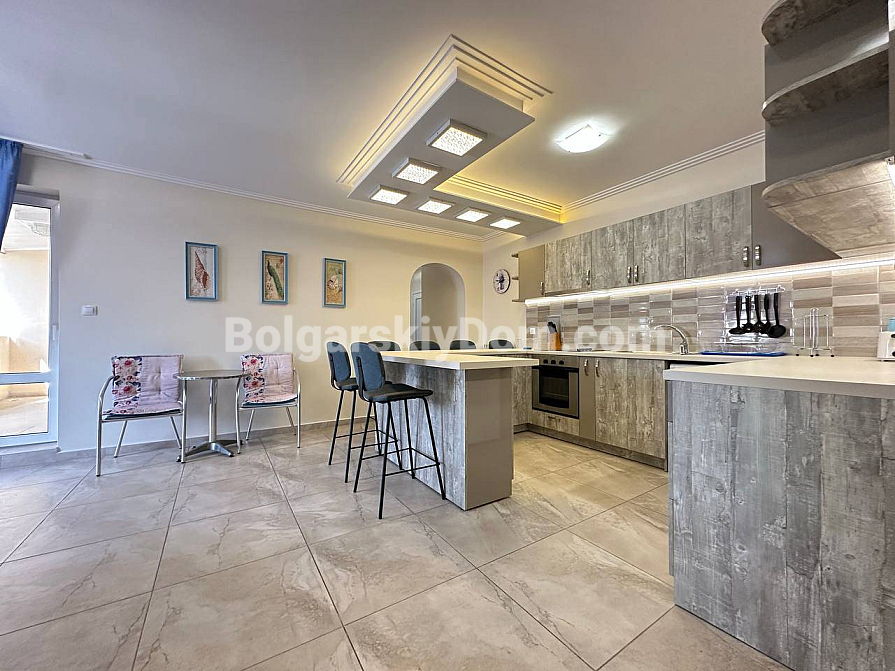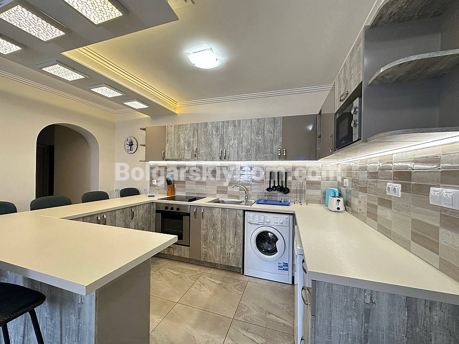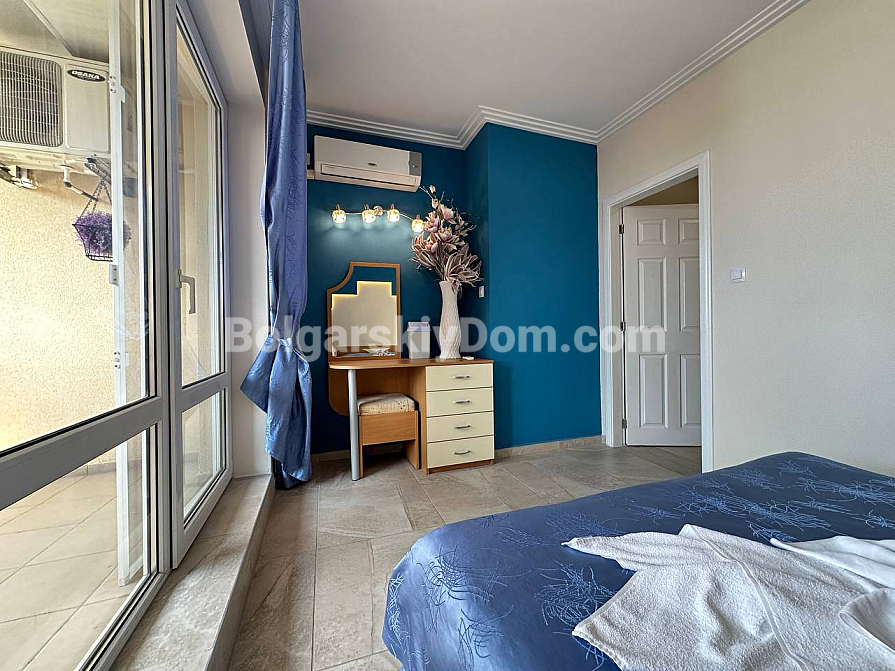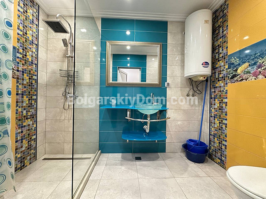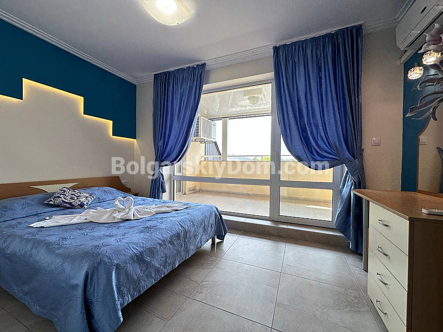 Forget about boring interiors — today, Bolgarskiy Dom presents a truly bright and spacious apartment with stylish designer accents! On the sixth and top floor of the Sea Dreams complex, a two-bedroom apartment with a total area of 85 sq.m. is for sale, fully ready to move in. Here you will find a modern corner kitchen with a full set of built-in appliances — from the oven and stove to the microwave and washing machine. The living room is filled with light thanks to large windows and decorated in cozy blue tones, while the bedrooms are designed for maximum comfort, featuring a panoramic window and access to the balcony in the main room. Even the bathroom stands out with its vivid, modern details and a glass sink. Excellent price and perfect move-in condition.